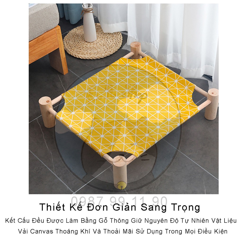 [Rẻ Vô Địch] Giường Gỗ Dành Cho Chó Mèo,Giường Võng Trên Cao Với Vải Canvas Thoáng Mát Cả Đông Lẫn Hè Phong Cách Nhật