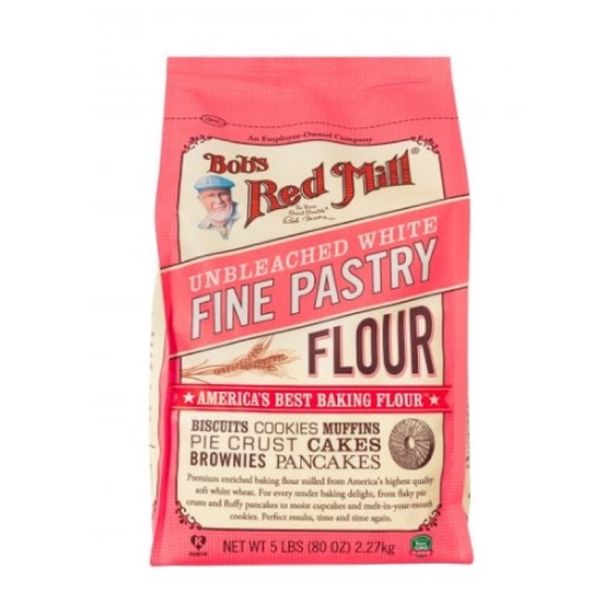 Bột mì hữu cơ không tẩy trắng gói 200g (từ gói lớn của hãng Redmill, Markal...) 1. Bột mì đa dụng: Bột mì cơ bản nhất là bột mì đa dụng, vì nó có thể làm được mọi loại bánh từ bánh quy, pancake hay muffin. Chỉ cần có bột mì đa dụng là mẹ có thể làm được mọi loại bánh cho con. 2. Bột mì nguyên cám được giữ nguyên mầm lúa mì, dùng để thay thế bột mì đa dụng trong công thức bánh để tăng giá trị dinh dưỡng. 3. Bột bánh mì có hàm lượng gluten cao, dùng trong các công thức làm bánh mì ngọt mềm, bánh có thớ dài (bánh croissant, paparoti, bánh mì hoa cúc, pizza…) 4. Bột bánh ngọt có hàm lượng gluten thấp hơn, thường làm bánh có kết cấu nhẹ như bánh brownie, bánh cupcake, bánh bông lan. Có thể dùng bột mì đa dụng pha với tinh bột bắp để làm bột bánh ngọt.
