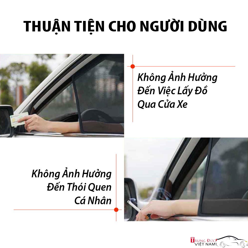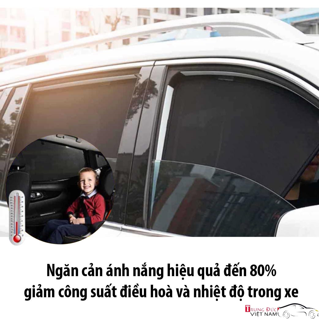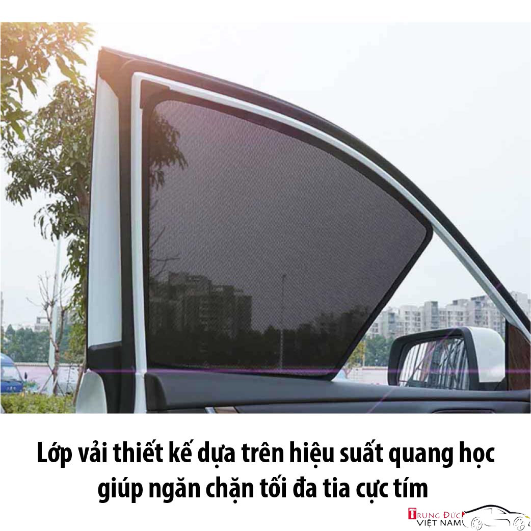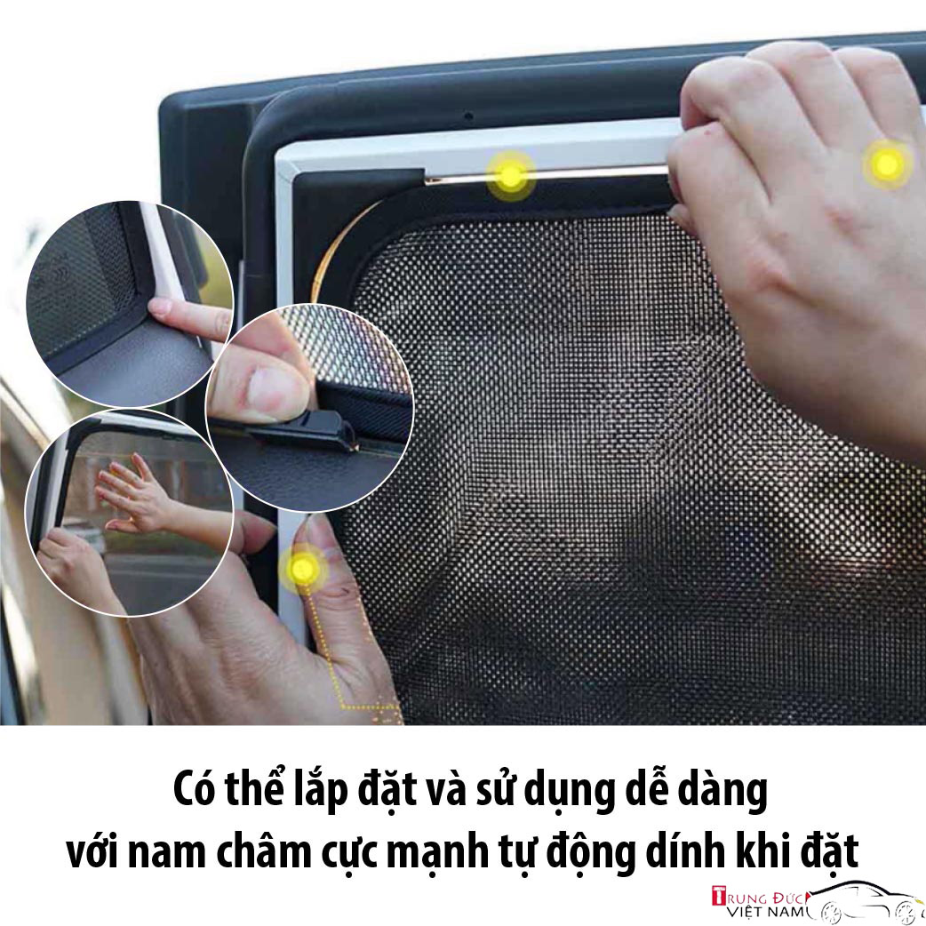 Chắn nắng có nam châm từ tự hút vào 4 cánh cửa xe, bạn có thể lên xuống kính khi đang sử dụng chắn nắng