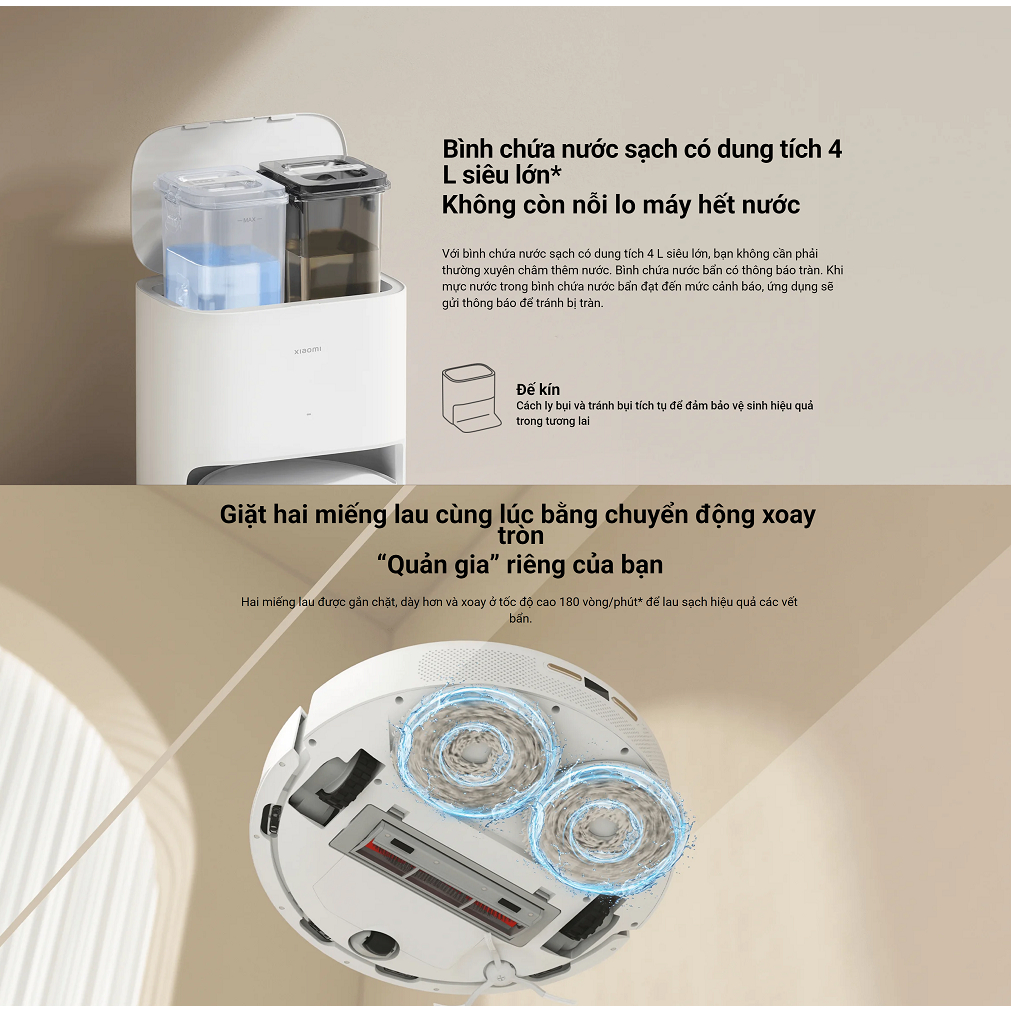 | Dung tích hộp chứa bụi | Nước Sạch 4L |