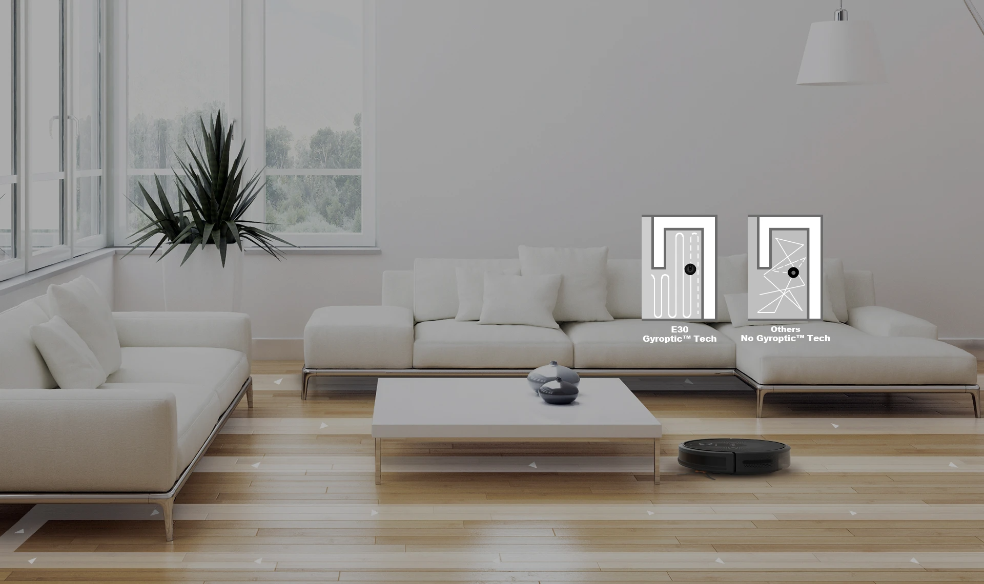 E30 có khả năng tính toán vị trí tương đối trong phòng và có thể điều hướng và dọn dẹp ngôi nhà theo cách hợp lý để không lặp lại những khu vực sạch sẽ mà nó đã đến.