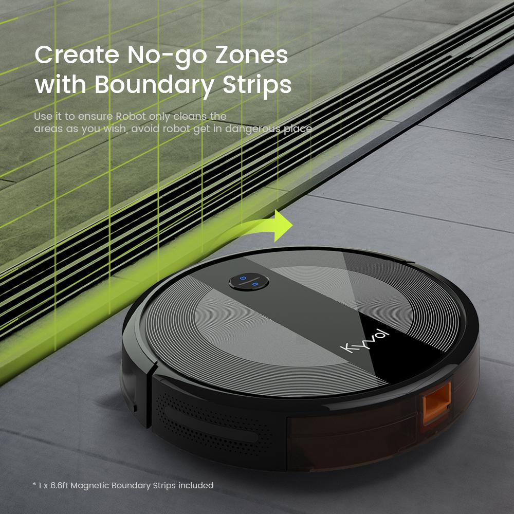 Sử dụng dải từ tính đi kèm theo máy, bạn có thể đặt các khu vực hạn chế trong nhà mà bạn không muốn Cybovac E30 đến. Khi hoạt động, các cảm biến của máy phát hiện các ranh giới và di chuyển theo hướng khác.
