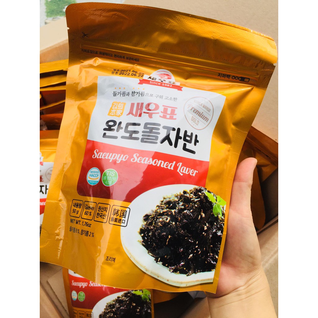 Giới thiệu Rong Biển, Lá Kim Vụn Xào Ăn Liền Vị oliu Hàn Quốc WanDo gói 50gr