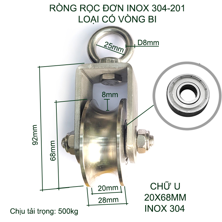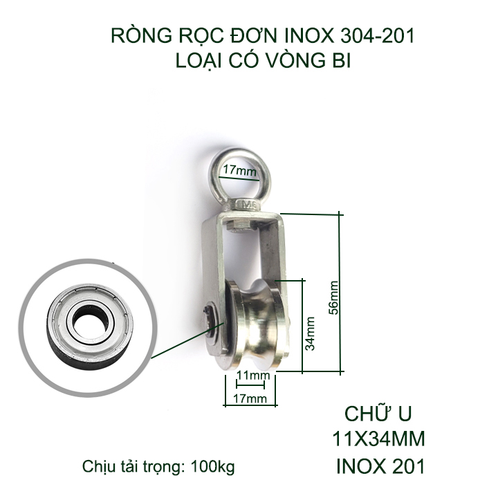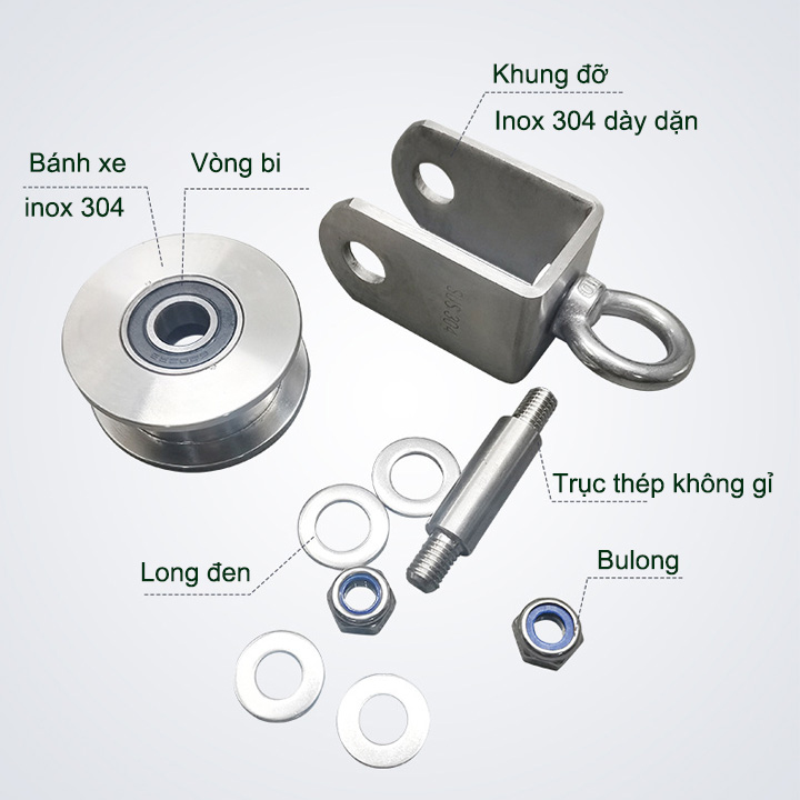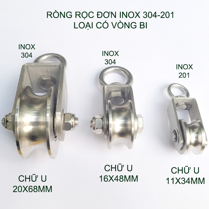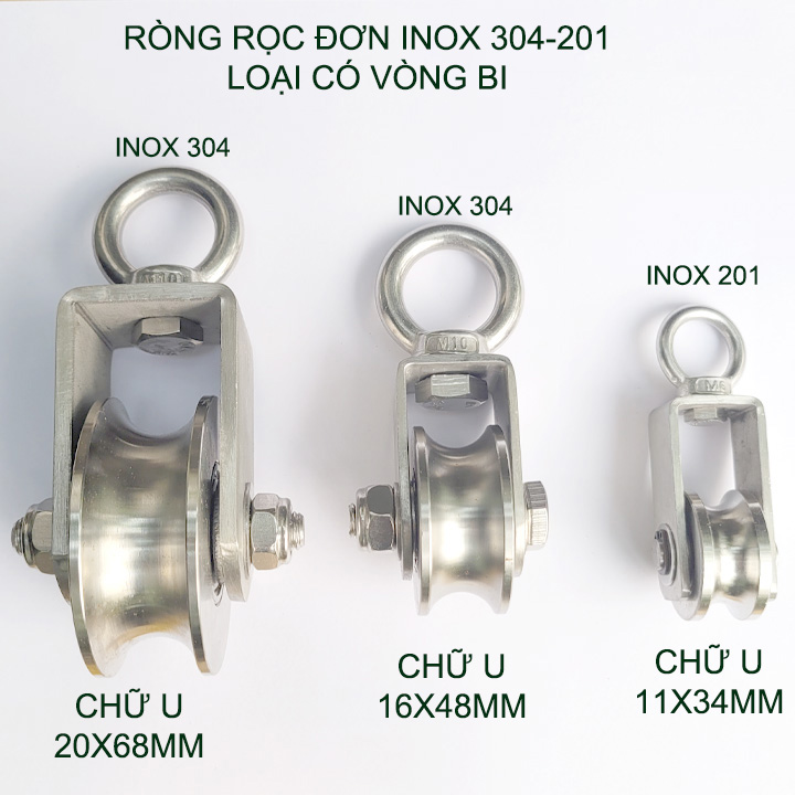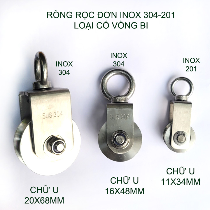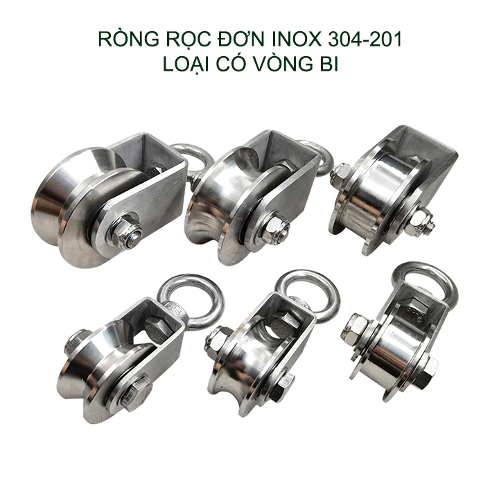 Ròng rọc đơn bằng inox 304-201 không gỉ rất chắc chắc, bền, chịu nhiệt độ cao, chống ẩm, chống ăn mòn, chịu được môi trường khắc nghiệt. Đặc biệt có vòng bi nên xoay rất êm, nhẹ và bền
