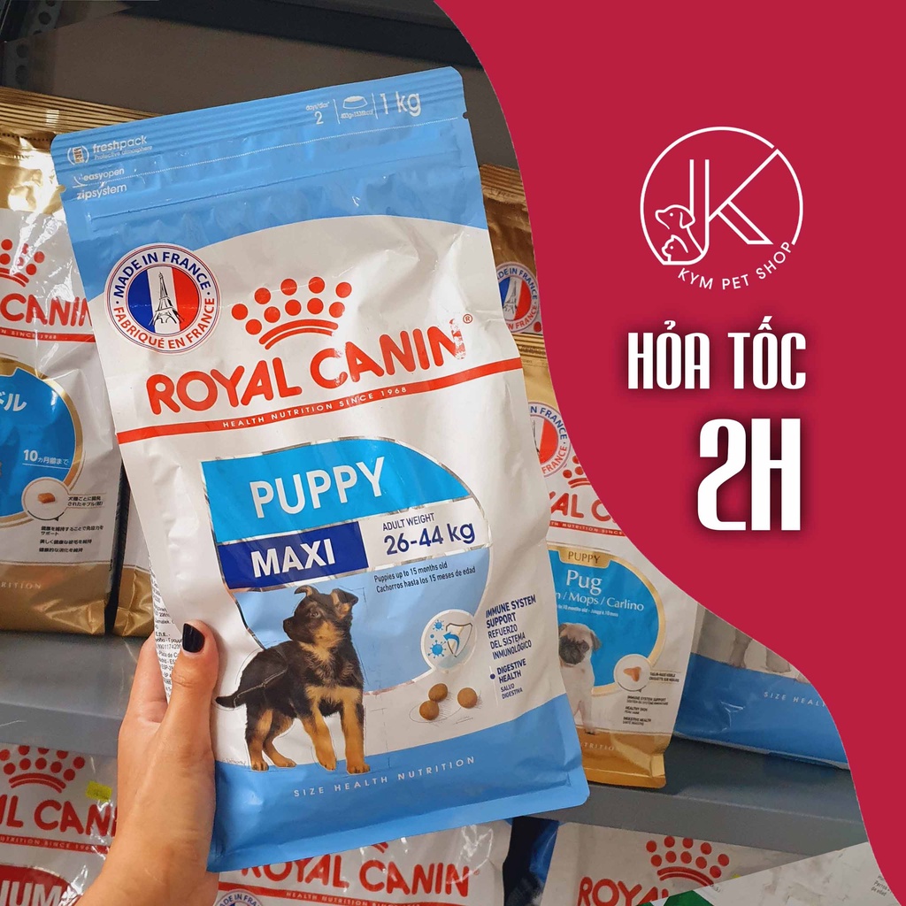 THỨC ĂN CHO CHÓ ROYAL CANIN MAXI ĐỐI TƯỢNG: PUPPY: Dành cho chó kích cỡ Maxi (cân nặng tối đa từ 26 - 44kg) và đang trong lứa tuổi Puppy từ 2 đến 15 tháng tuổi. ADULT: Dành cho chó kích cỡ Maxi (cân nặng tối đa từ 26 - 44kg) và trên 15 tháng tuổi. GIỚI THIỆU: Những giống chó size Maxi (size lớn) dòng đại như: Becgie Đức, Husky, Alaska, Rottweiler, Golden Retriever, Labrador... được ưa chuộng vì khả năng làm việc và hoạt động đáng kinh ngạc. Đây là giống chó chăn gia súc, theo dõi, cứu hộ, bảo vệ và hỗ trợ tuyệt vời. Những con chó thuộc giống chó size Maxi này mạnh mẽ và tận tụy nhưng thường dễ mắc các bệnh về đường tiêu hóa, đau khớp và thậm chí là vấn đề về tim. Với công thức của thức ăn cho chó ROYAL CANIN MAXI đáp ứng nhu cầu của giống chó to lớn dòng đại trong suốt vòng đời của chúng. • Giúp duy trì sức khoẻ tiêu hóa • Hỗ trợ giai đoạn tăng trưởng dài với năng lượng vừa phải • Hỗ trợ sức khoẻ xương & khớp • Hỗ trợ hệ miễn dịch khỏe mạnh • 100% dinh dưỡng cân bằng • 100% đảm bảo an toàn LỢI ÍCH: 1. Hệ tiêu hóa khỏe mạnh: Sự kết hợp độc đáo của các chất dinh dưỡng để hỗ trợ tiêu hóa với các protein tiêu hóa cao (LIP) và sự cân bằng đường ruột cùng với hệ dưỡng chất hỗ trợ phát triển hệ bài tiết. 2. Tăng trưởng dài - Năng lượng trung bình: Đáp ứng nhu cầu năng lượng vừa phải của giống chó lớn có chu kỳ phát triển dài. 3. Sức khoẻ xương và khớp: Năng lượng cân bằng và các khoáng chất (canxi và phốt pho) góp phần hỗ trợ cho xương và khớp khỏe mạnh. 4. Bảo vệ tự nhiên: Với hợp chất chống oxy hóa đặc biệt từ ROYAL CANIN giúp bảo vệ tự nhiên với giống chó size maxi. 5. Thiết kế hạt thức ăn cho chó ROYAL CANIN: Hạt được thiết kế đặc biệt cho giống chó size Maxi để khuyến khích nhai, từ đó giảm công việc cho hệ tiêu hóa #kimpetshop #hatmeo #hatcho #thucanmeo #thucancho #thucankho #hatmeokho #hatchokho #thucung #petshop #royalcanin #catsrang #cateye #royalcainindoor #royalcaninfit32 #royalcaninkitten #motherandbabycat #royalcaninminipuppy #royalcaninminiadult #royalcaninmediumpuppy #royalcaninmediumadult #royalcaninmaxipuppy #royalcaninmaxiadult #royalcaninpoodlepuppy #royalcaninpoodleadult # meocon #chocon #thucphamdieutrichomeo #thucphamthuy #ciaochuru #supthuong #snackthuong #doglovers #catlovers