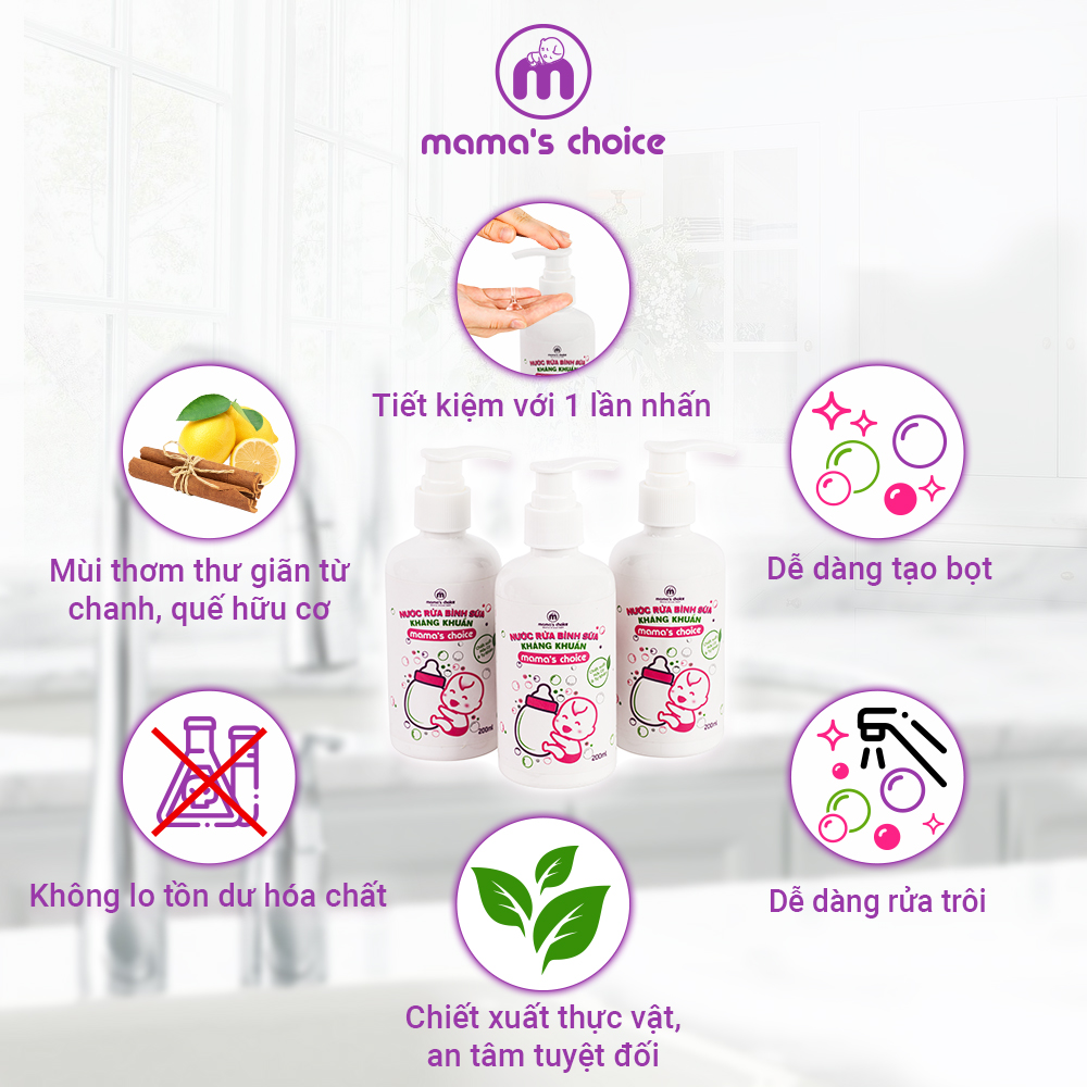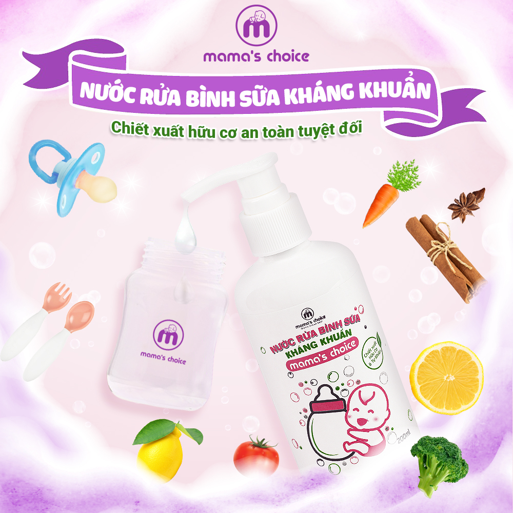 NƯỚC RỬA BÌNH SỮA KHÁNG KHUẨN MAMA’S CHOICE – chiết xuất Hữu cơ & Tự nhiên