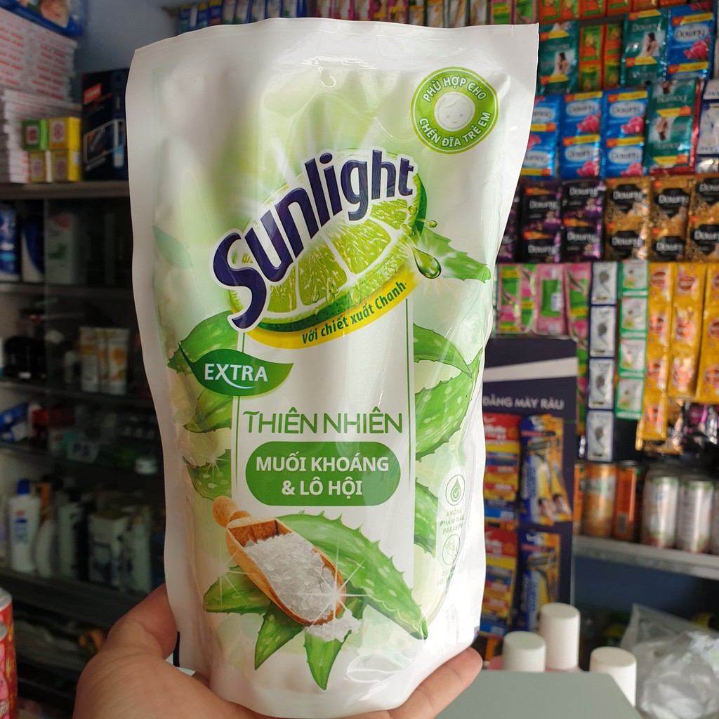 Nước Rửa Chén Sunlight Thiên Nhiên dạng chai kết hợp các thành phần chiết xuất chanh tươi, muối khoáng tự nhiên và tinh chất lô hội trong từng giọt, giúp đánh bay dầu mỡ nhanh chóng mà vẫn an toàn, dịu nhẹ với da tay. Hương thơm nhẹ nhàng, thanh khiết cho chén bát luôn thơm mát dài lâu.,Tính năng nổi trội • Làm từ thành phần tự nhiên được nhập khẩu: 100% lô hội và muối khoáng nhập từ Đức và nước cốt của những trái chanh nhập khẩu từ Anh. • Dịu nhẹ với da tay*, vì có chứa muối khoáng thiên nhiên (loại muối được sử dụng trong spa để tẩy tế bào chết, ngoài ra có công dụng làm ẩm và làm đều da) được chứng nhận bởi Viện Da Liễu Trung Ương. *Thử nghiệm và chứng nhận bởi viện Da Liễu Trung Ương.