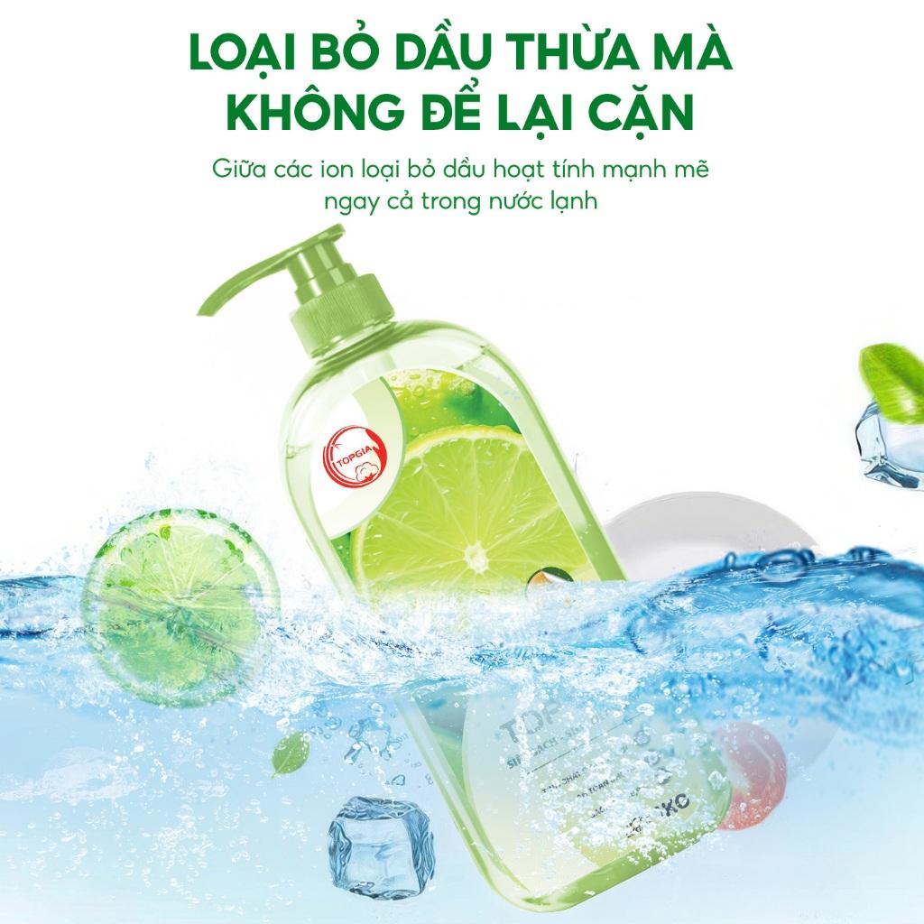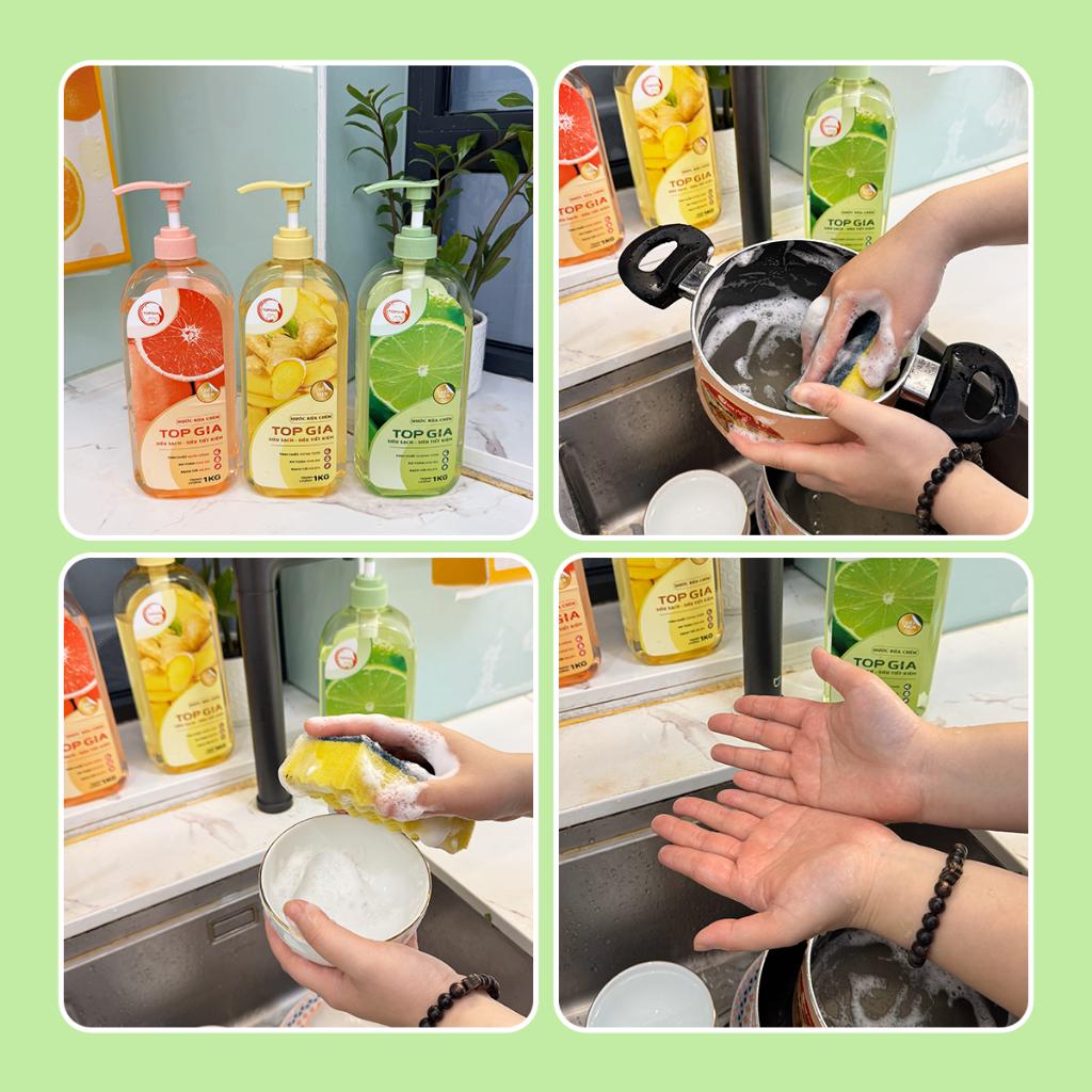 Nước rửa chén bát TopGia hương chanh chiết xuất tự nhiên đậm đặc an toàn cho da tay làm sạch vượt trội chai 1.08kg