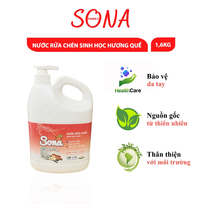Nước rửa bát, nước rửa chén Sinh học SoNa 1600ml 🖍 Thân thiện với làn da và môi trường