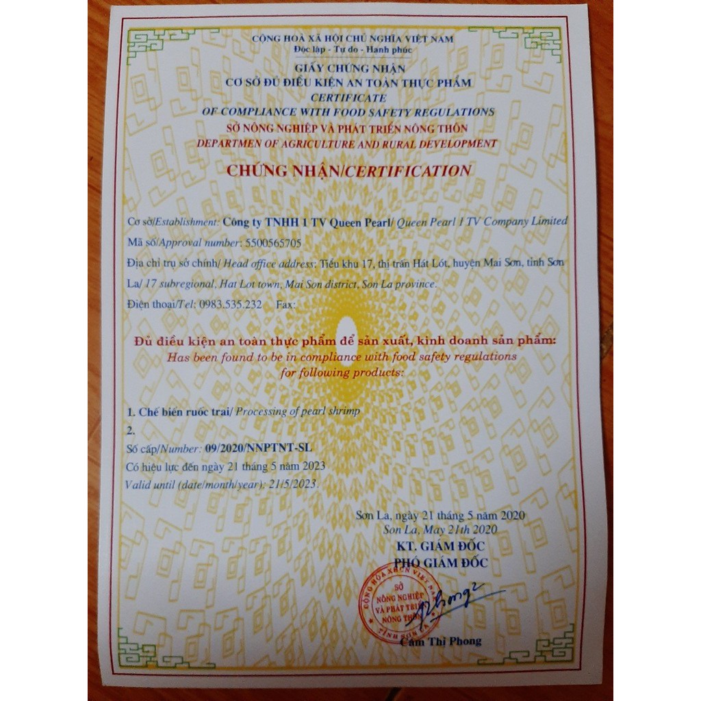 Dây truyền sản xuất ruốc trai của công ty Queen Pearl là dây truyền khép kín, chất lượng an toàn thực phẩm và có tem truy xuất nguồn gốc để các mẹ yên tâm sử dụng cho bé yêu nạ ^^