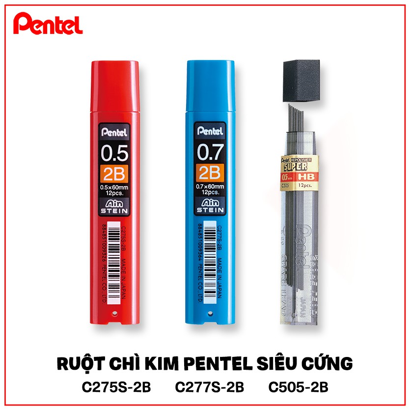 Ruột Chì Kim Pentel - Siêu Cứng (0.5/0.7mm): CAM KẾT HÀNG CHÍNH HÃNG 100% -------------------------- 🎉 Thông tin sản phẩm: Ruột Chì Kim Pentel AINSTEIN Siêu Cứng (0.5/0.7mm - 12 Ruột/Tuýp)