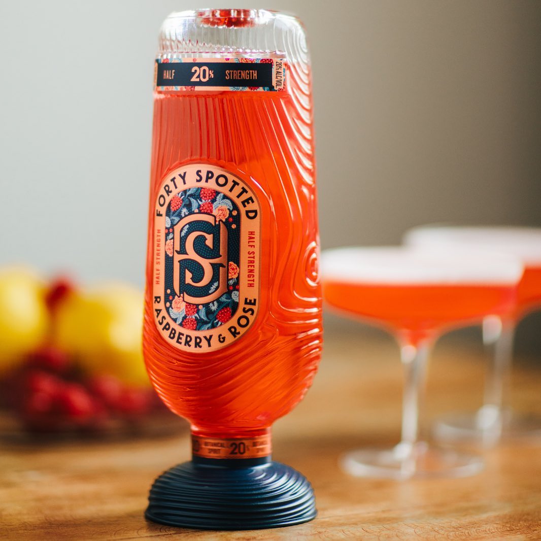 Forty Spotted Raspberry & Rose Half-Strength Botanical Spirit là một dòng rượu mạnh tươi mát cùng hương hoa với nồng độ cồn giảm một nửa so với bình thường. Hương vị bánh tart dâu rừng và cam quýt mở lối cho sự bùng nổ của hương bưởi, lắng đọng tinh tế nơi hậu vị hương hoa hồng và quả mọng.