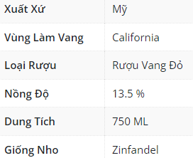 Rượu vang đỏ Mỹ Gnarly Head Old Vine Zinfandel này có phần cốt lõi là hương vị mocha và dâu đen béo ngậy với các lớp gia vị và vani được cân bằng bởi bánh mì nướng phức hợp của Pháp và sồi Mỹ. Các hương vị chính của Zinfandel là mứt, quả việt quất, hạt tiêu đen, anh đào, mận, boysenberry, nam việt quất, và cam thảo. Khi bạn nếm thử Zinfandel, sự bùng nổ của kẹo trái cây theo sau là gia vị và thường là một kết thúc khói