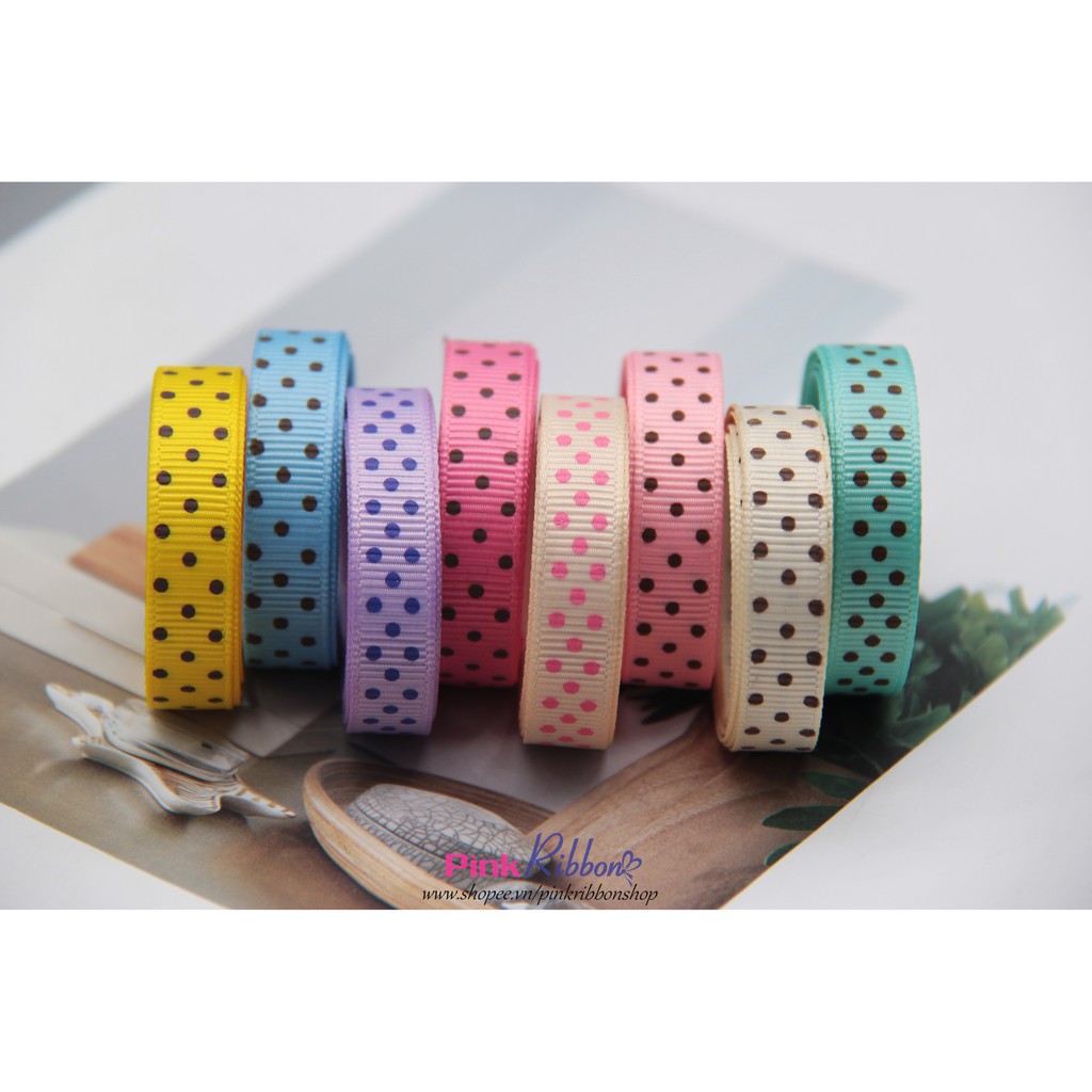 Ruy băng chấm bi màu cỡ 9mm - Cuộn 5m