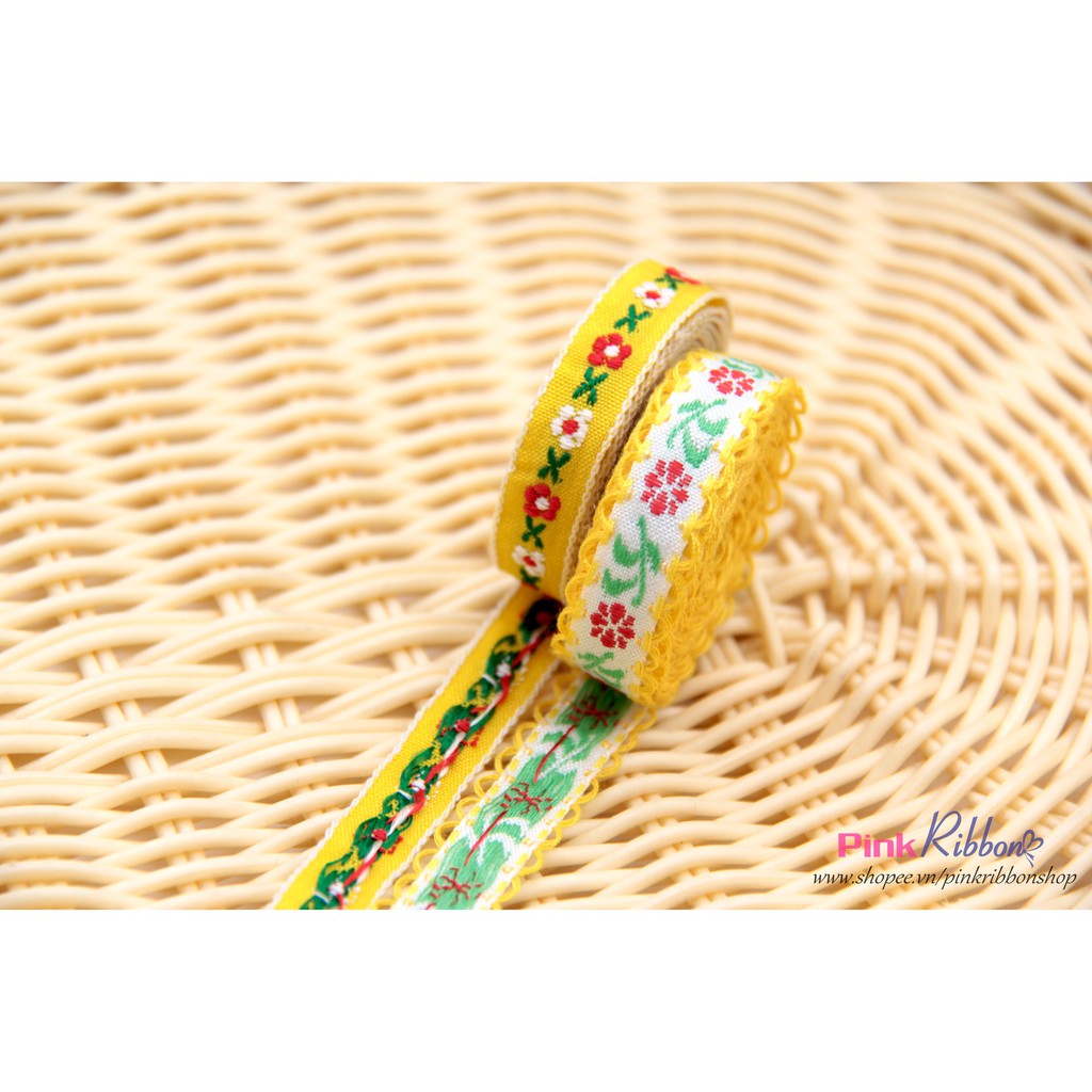 Ruy băng được làm từ chất liệu vải thô, thêu hình hoa nổi tinh xảo, nổi bật. Biên ruy băng có kết chỉ bô đê đẹp mắt. Chất liệu cao cấp, phù hợp sử dụng trong ngành may mặc, phụ kiện thời trang, phụ kiện tóc, quà tặng. Kích thước: 1cm và 1.2cm Màu sắc: 02 màu Đơn giá: 10.000/mét