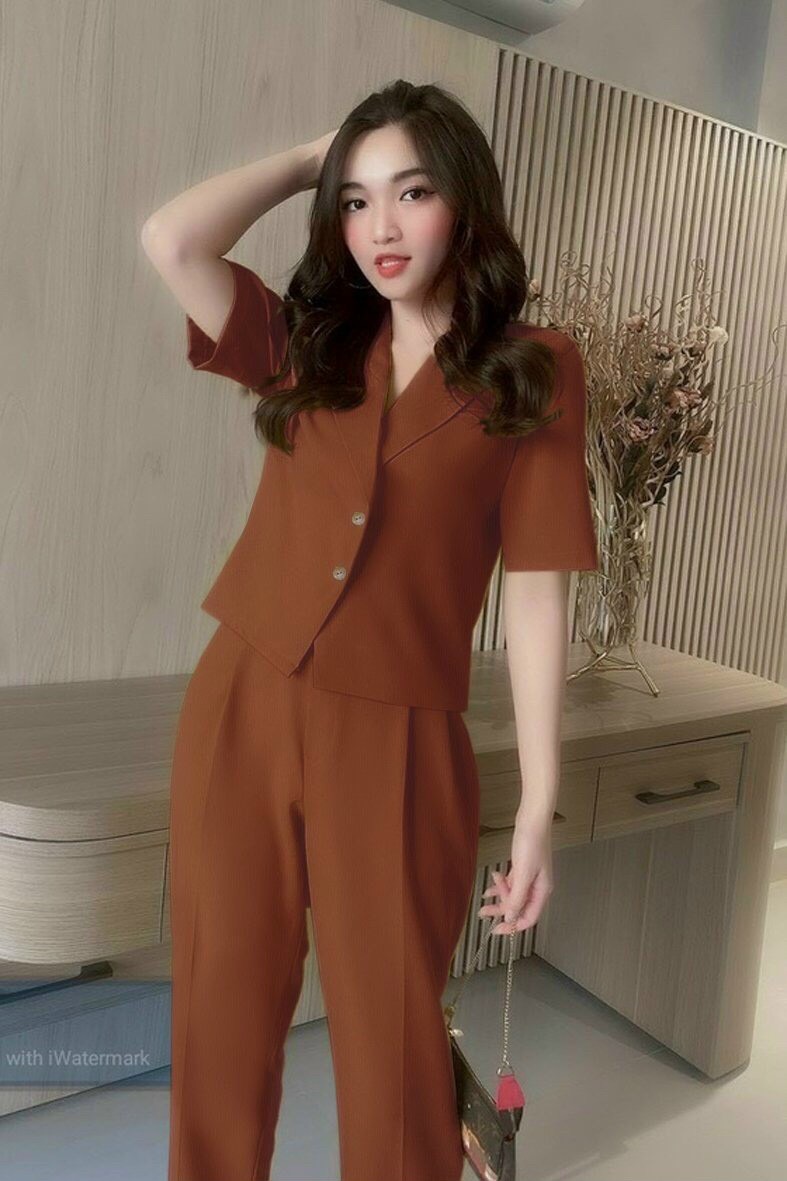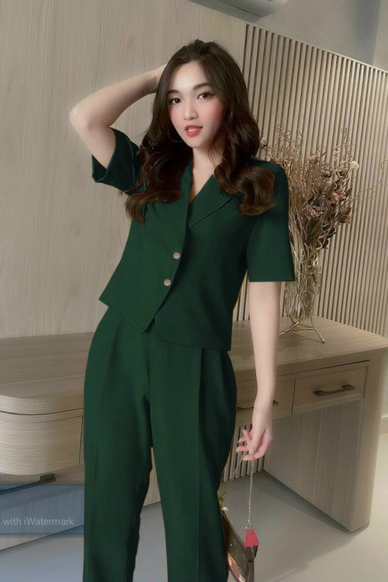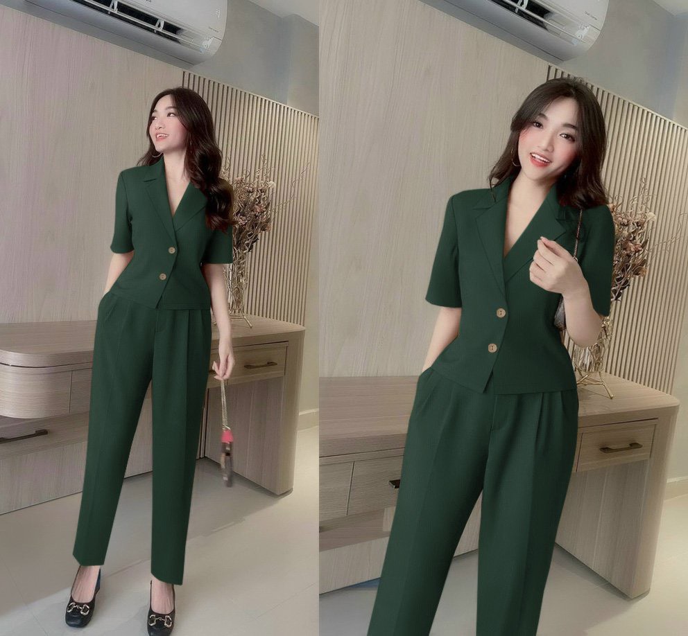 Set nguyên bộ áo vest cài nút phối quần dài sang chảnh