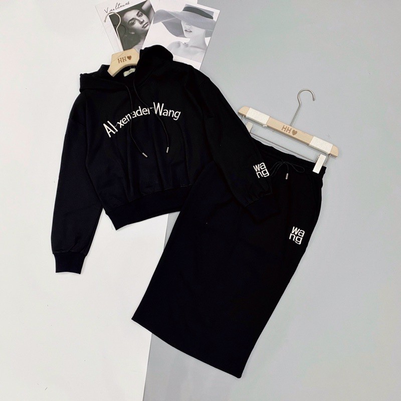 Giới thiệu S0274 Set Váng Wa Cá Tính Phối Áo Hoodie Thêu Chữ Nổi và Chân Váy Dài Chữ A