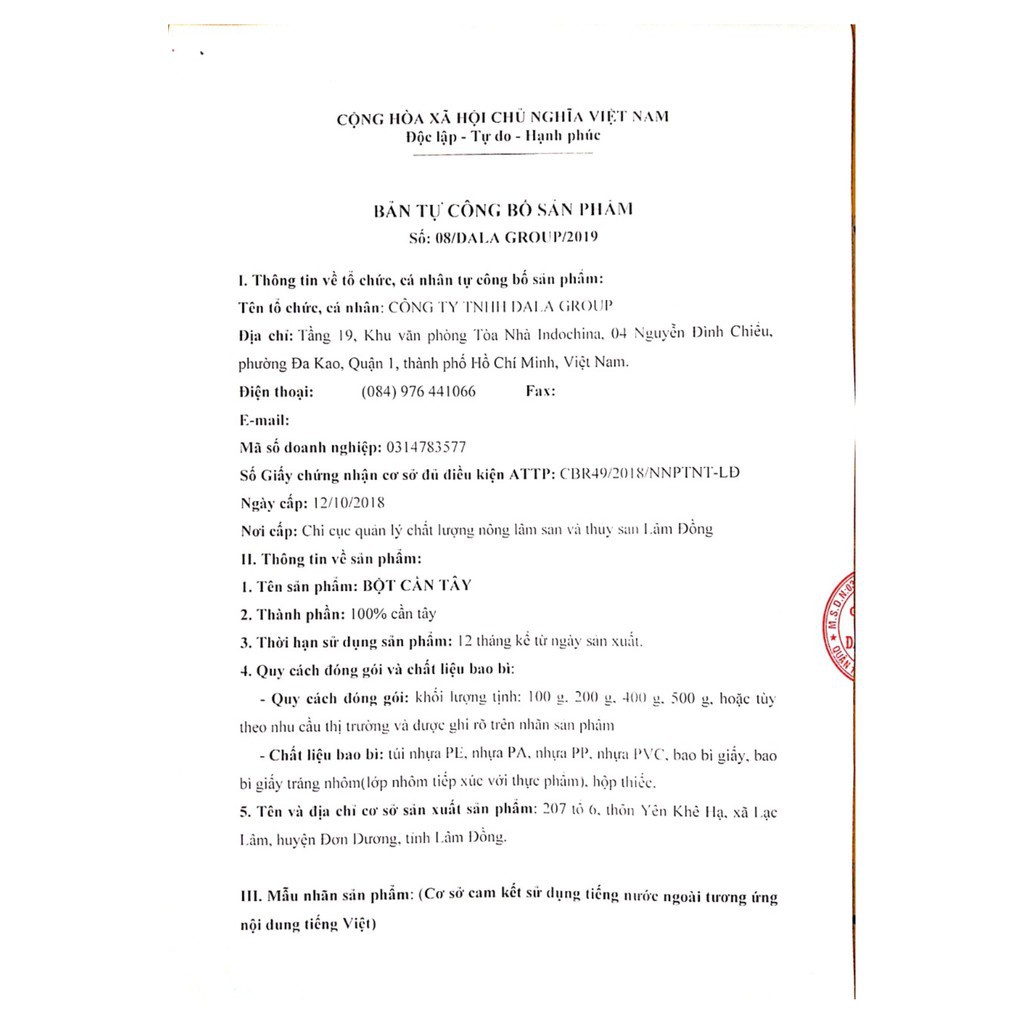 5. Hạn sử dụng: 1 năm kể từ ngày sản xuất. Bảo quản: Giữ kín bao gói sau khi mở. Bảo quản nơi khô ráo, thoáng mát tránh xa ánh sáng trực tiếp. Sản phẩm không phải là thuốc, không có tác dụng thay thế thuốc chữa bệnh. ======================== CÔNG TY TNHH DALA GROUP #botcantay #bột_cần_tây, #celery, #botrauxanh, #juice #detoxgiamcan #dalahouse #botgiamcan #botraucu #doangiamcan #doankieng #suckhoe #dinhduong