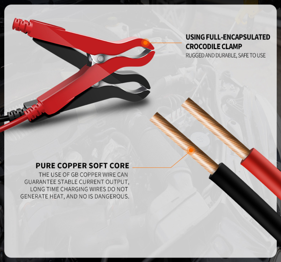 - Đầu kẹp và dây dẫn cao cấp, an toàn sử dụng.