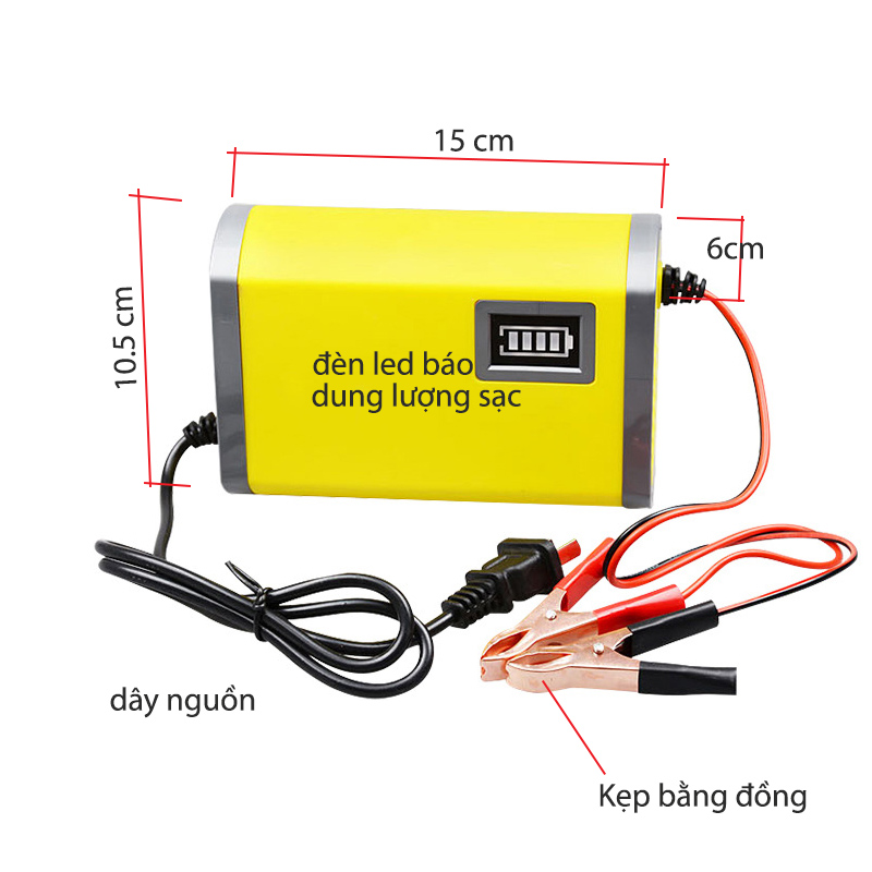 Dòng sạc: 6A, sạc bình ắc quy dung lượng từ 20Ah > 80Ah