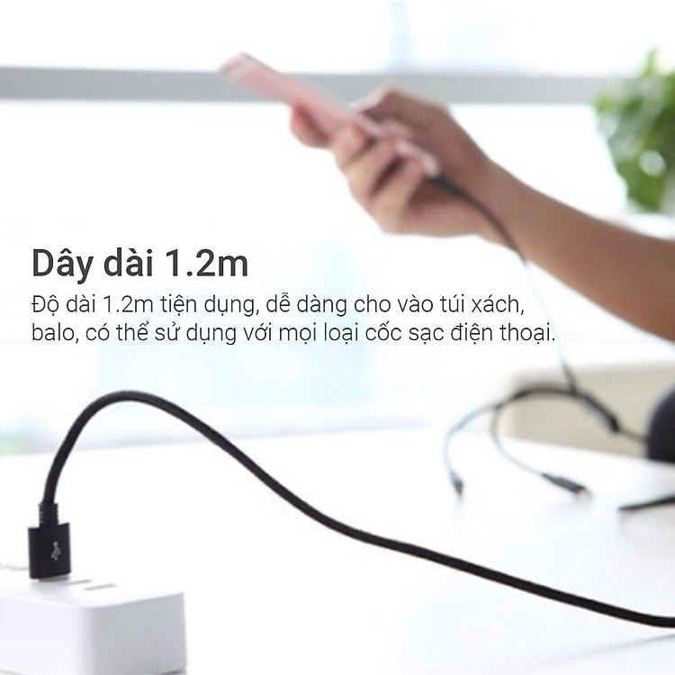 - Dây sạc độ dài trên 1m, có thể dễ dàng cho vào túi xách hay ba lô.