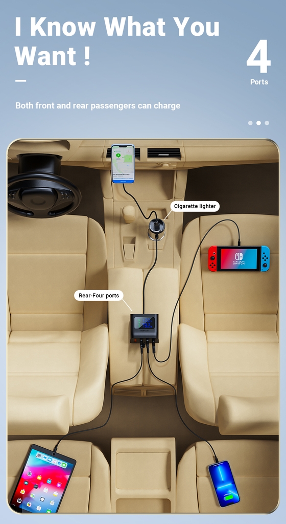 - Tính năng 2: Màn hình hiển thị luân phiên điện áp sạc và công suất sạc của bốn cổng