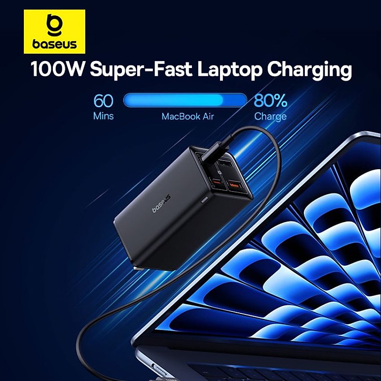Công suất lớn 100W: Với công suất 100W, cốc sạc này có khả năng nhanh chóng sạc đầy năng lượng cho các thiết bị lớn như laptop, máy tính bảng và điện thoại.