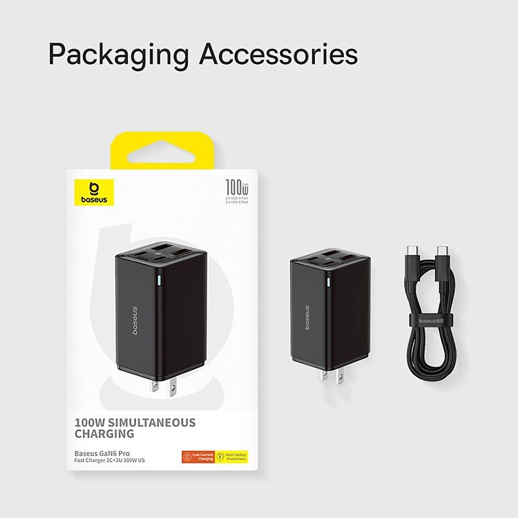 Giới thiệu Bộ sạc nhanh 100W Baseus GaN6 Pro Fast Charger 2C+2U (Kèm cáp C to C 20V/5A 100W, 1m)