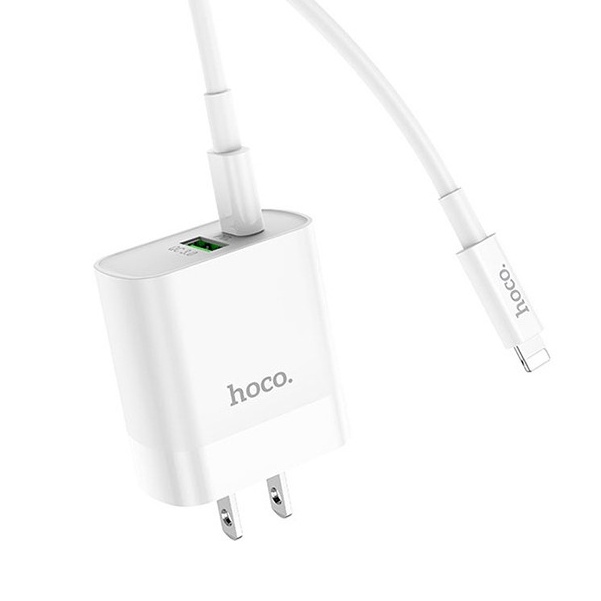 Điện Thoại & Phụ Kiện > Phụ kiện > Cáp, sạc & bộ chuyển đổi > Bộ sạc || Bộ Sạc Nhanh PD 20W, Quick Charge 3.0 Hoco C80 - Củ Sạc Nhanh Kèm Cáp Sạc Lightning, Type C