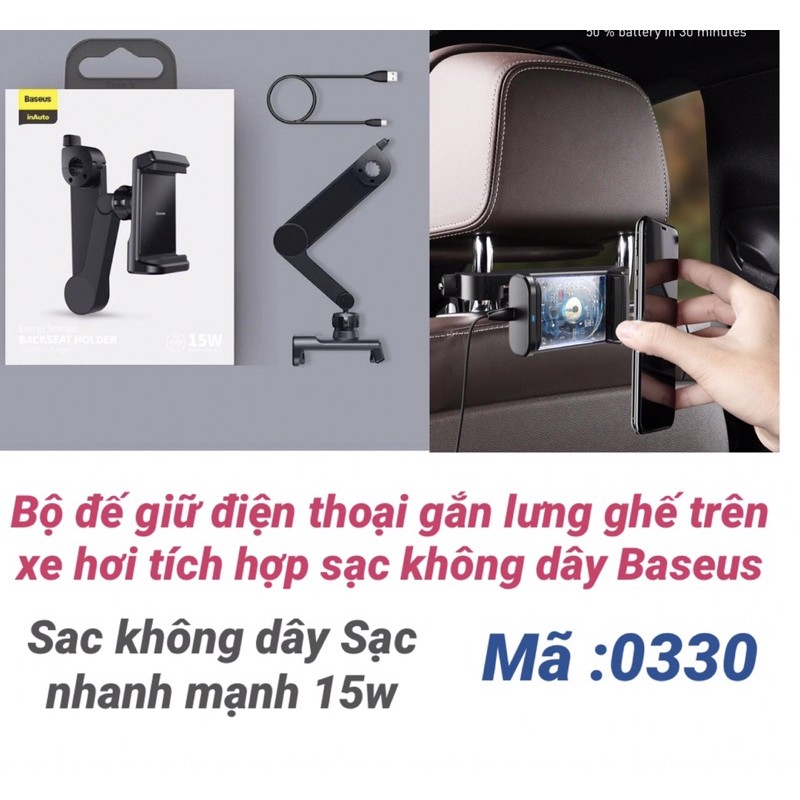 Ô tô > Phụ kiện nội thất ô tô > Giá đỡ điện thoại || Sạc xe hơi không dây gế sau gắn trên lưng gế hiệu baseus