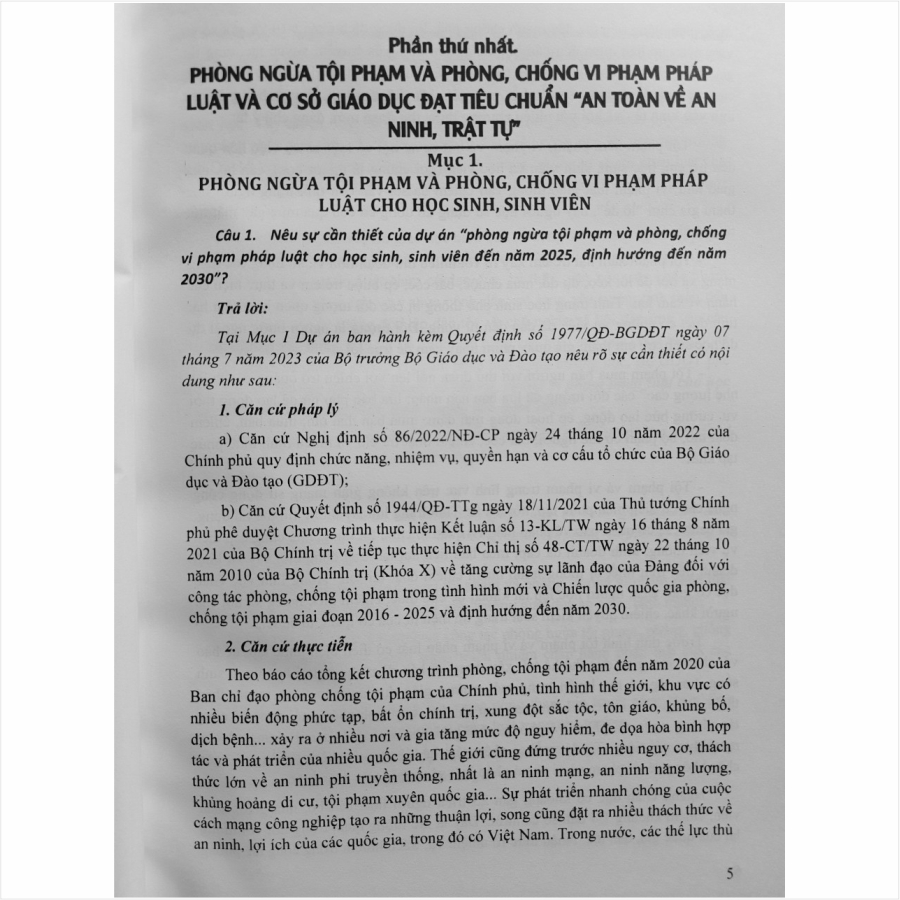 Phần I. PHÒNG NGỪA TỘI PHẠM VÀ PHÒNG, CHỐNG VI PHẠM PHÁP LUẬT VÀ CƠ SỞ GIÁO DỤC ĐẠT TIÊU CHUẨN “AN TOÀN VỀ AN NINH, TRẬT TỰ”