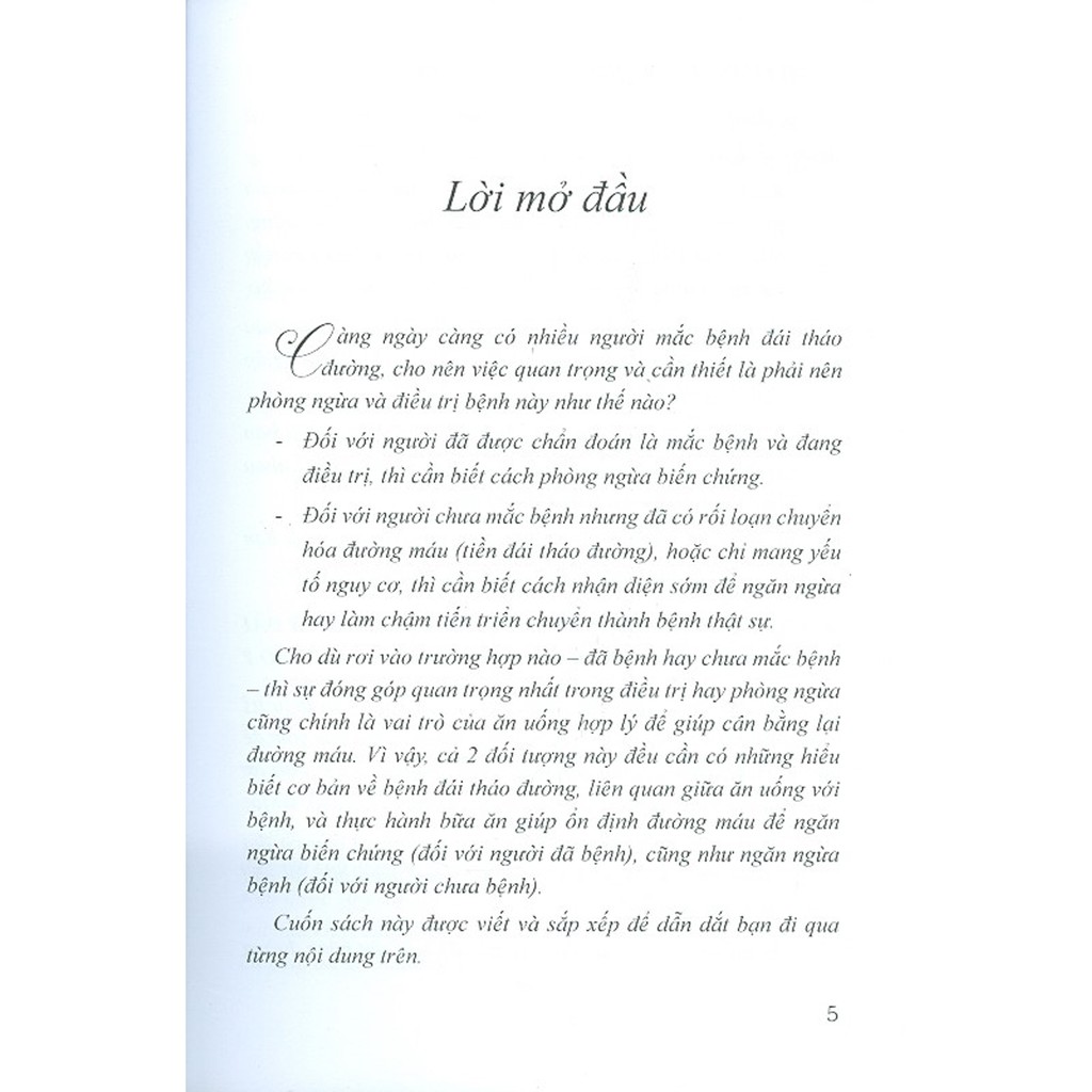 Để có thể phòng ngừa và điều trị căn bệnh này, chế độ ăn uống góp phần rất quan trọng. Cuốn sách này sẽ đưa ra chế độ ăn uống đúng cách giúp cho những người bị mắc bệnh tiểu đường giảm bớt triệu chứng của bệnh cũng như giúp mọi người phòng ngừa căn bệnh này."