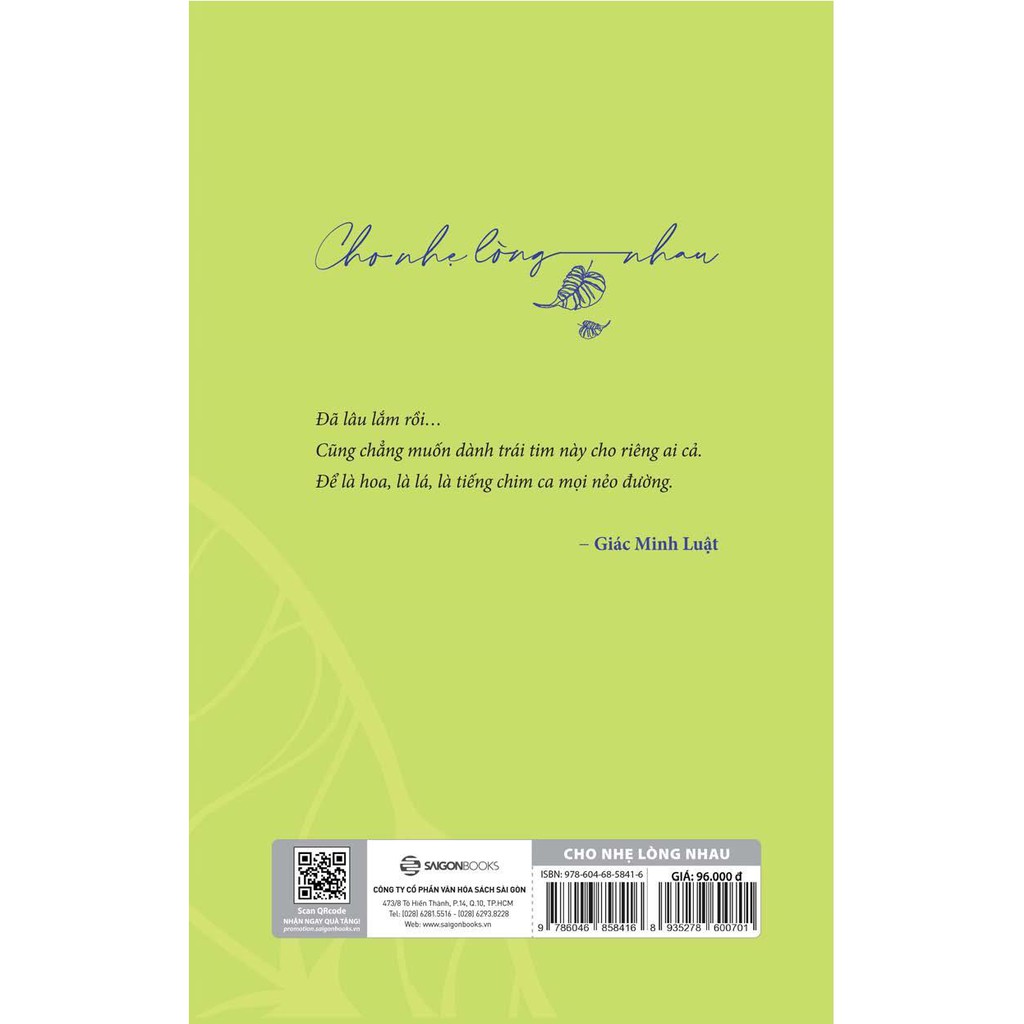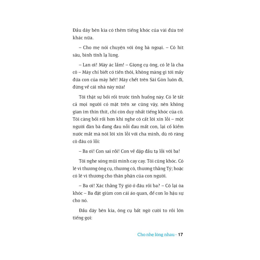 Không ngôn từ hàn lâm, không nhiều tình tiết cao trào, mọi câu chuyện trong tập truyện Cho nhẹ lòng nhau của Đại đức Giác Minh Luật rất nhẹ nhàng, rất trung dung, và cũng rất “đời” qua góc nhìn thật từ bi.