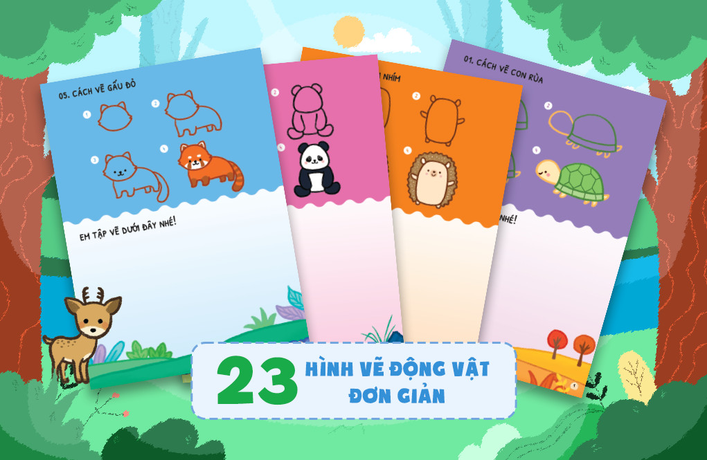 - 23 hình vẽ theo từng chủ đề của sách: Hình vẽ đơn giản, dễ thương sẽ giúp em hứng thú hơn .