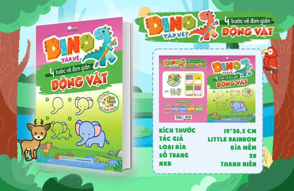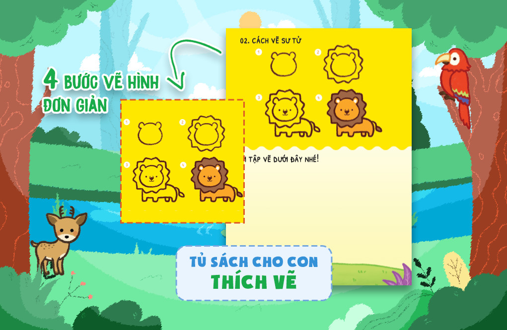 - Là tủ sách cho con thích vẽ với 4 bước vẽ đơn giản: Sách sẽ hướng dẫn em vẽ chi tiết và dễ hiểu giúp em tiếp cận và thực hiện bức tranh một cách dễ dàng và thú vị.