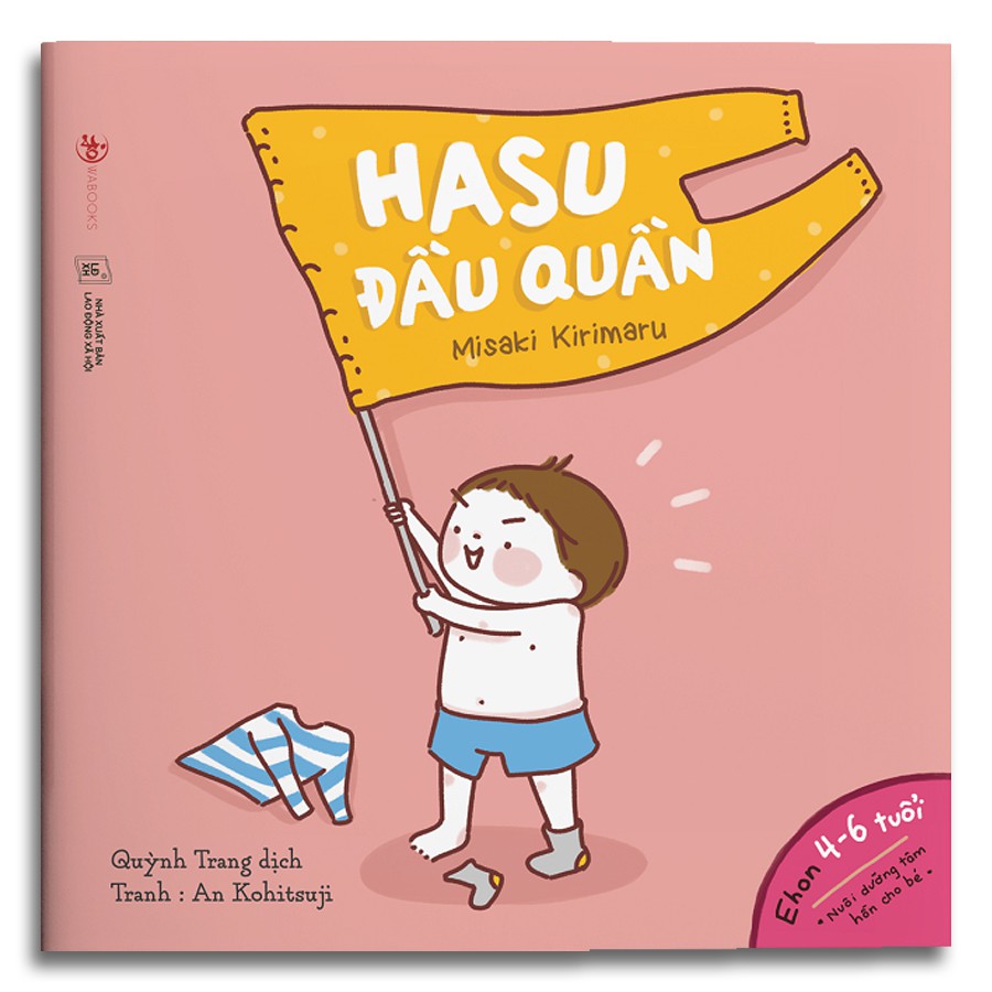 1. Hasu đầu quần: Mở đầu câu câu chuyện Ehon Hasu đầu quần, một cảnh tượng quen thuộc được vẽ ra. Hasu chuẩn bị đi tắm, nhưng hôm nay có điều khang khác bình thường. Mẹ không giúp Hasu cởi quần áo mà thay vào đó, mẹ bảo: “Con lớn rồi, hãy tự tập cởi quần áo đi!”. Được thôi, việc này Hasu đã nhìn mẹ làm cho mình suốt rồi, chẳng qua bạn ấy chưa có cơ hội để thử thôi. Để hôm nay Hasu thực hành cho mẹ xem nhé, chuyện đơn giản ý mà! Đúng như dự đoán, chuyện này chẳng khó chút nào. Loáng một cái, Hasu đã cởi xong áo rồi. Bây giờ thì đến lượt cởi quần đây. Đến lúc này, Hasu bỗng nảy ra một ý tưởng, đó là đội chiếc quần kia lên đầu làm tai thỏ. Chiếc quần dài với hai ống lúc lắc biến Hasu biến thành một chú thỏ khổng lồ. - Mẹ ơi, con làm ông thỏ này! - Thế à, mẹ chào ông thỏ nhé – Mẹ hào hứng nhập cuộc cùng Hasu. Thích chí quá, Hasu muốn khoe ngay với bố. Nhìn thấy Hasu với bộ dạng thật buồn cười, bố không nhịn được mà đã bật ra thành tiếng “ha ha ha” giòn tan.