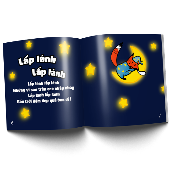 Bằng những câu từ đầy vần điệu, cuốn ehon ““Lấp lánh lấp lánh” góp phần rất quan trọng trong việc xây dựng cho con một thế giới đầy những âm thanh vui tươi, chân thật, phát triển khả năng tư duy ngôn ngữ cùng sự hoạt ngôn cho con.