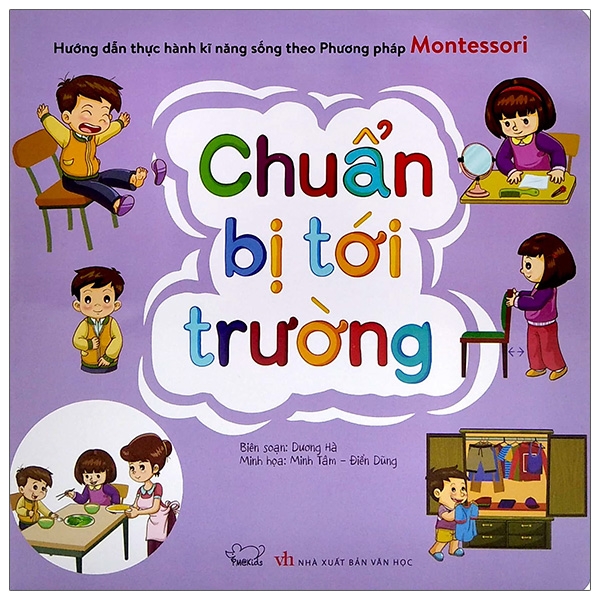 Bộ sách HƯỚNG DẪN THỰC HÀNH KĨ NĂNG SỐNG THEO PHƯƠNG PHÁP MONTESSORI được biên soạn phù hợp với các bé. Bằng các hình minh họa trực quan sinh động có màu sắc hài hòa, nội dung giản dị, dễ hiểu, bố mẹ có thể hướng dẫn các bé những kĩ năng sống cơ bản nhất từ nhà đến trường để bé vững tin và hòa nhập tốt hơn khi bước vào tuổi đi học. CHUẨN BỊ TỚI TRƯỜNG: Bé đã biết mặc quần áo như thế nào chưa? Mặc áo sơ mi thì phải cài cúc, mặc quần dài thì phải thắt dây lưng. Sau khi chải tóc, cũng là lúc ngồi vào bàn ăn sáng, bé và bố mẹ hãy cùng trò chuyện thật vui vẻ. Hôm nay, đến trường bé sẽ làm gì? Hãy chăm chỉ ngoan ngoãn, nghe lời cô giáo và giúp đỡ các bạn nhé. Với hình ảnh minh họa đơn giản, dễ hiểu, bắt mắt… bộ sách sẽ giúp các bé sẽ có thể trở nên tự lập hơn và làm tốt hơn những công việc đơn giản hàng ngày. Còn bố mẹ sẽ không cần phải “cuống cuồng” lo cho bé mỗi sáng sáng, trước khi đi học, vì bé bây giờ là “bé ngoan, bé giỏi, bé tự lập” rồi. Cô giáo và bạn bè cũng yêu quý bé vì bé biết cách giúp đỡ bạn bè, không chỉ học giỏi mà còn rất chăm chỉ nữa nhé!
