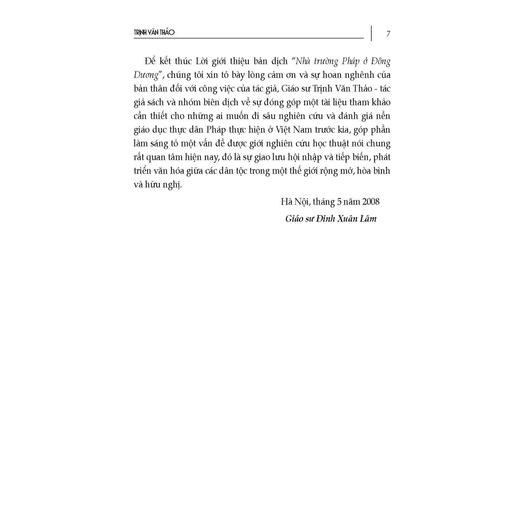 Tuy nhiên, chế độ thực dân đã để lại đất nước này những dấu vết không thể phai mờ. Cuốn sách Nhà trường Pháp ở Đông Dương ra đời nhằm mục đích đánh giá những tác động lâu dài của thời kỳ thuộc địa đối với thân phận xã hội và văn hóa của các dân tộc Đông Dương. Cuốn sách này cho ta thấy rằng, hệ thống giáo dục truyền thống Nho giáo đã phát huy và tôn vinh kiến thức cũng như bằng cấp như thế nào. Hơn nữa, hệ thống giáo dục truyền thống ấy là một mảnh đất màu mỡ cho sự thăng hoa của nhiều thế hệ tri thức sau này đã biết nắm lấy những gì tinh túy nhất của hệ thống giáo dục thuộc địa để phụng sự đất nước. Cuốn sách này cũng cho phép ta hiểu được thái độ và hành vi của con người Việt Nam đối với trường học và sự nghiệp học đường.