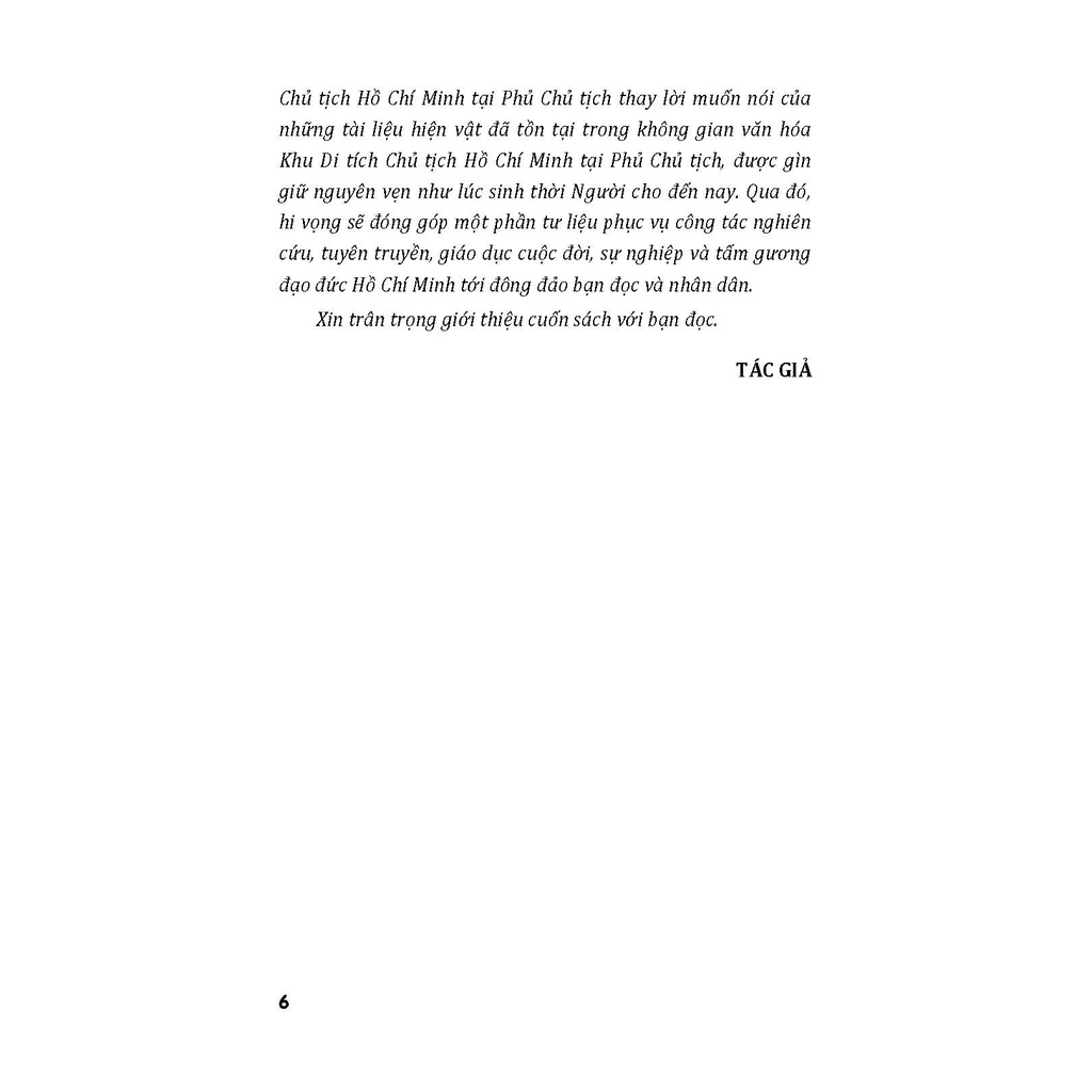 Tập hợp câu chuyện kể, bài viết của các cán bộ Khu Di tích Chủ tịch Hồ Chí Minh tại Phủ Chủ tịch như thay lời muốn nói của những tài liệu hiện vật đã tồn tại trong không gian văn hóa Khu Di tích, được giữ gìn nguyên vẹn như lúc Người sinh thời cho đến nay và lưu truyền đến các thế hệ mai sau