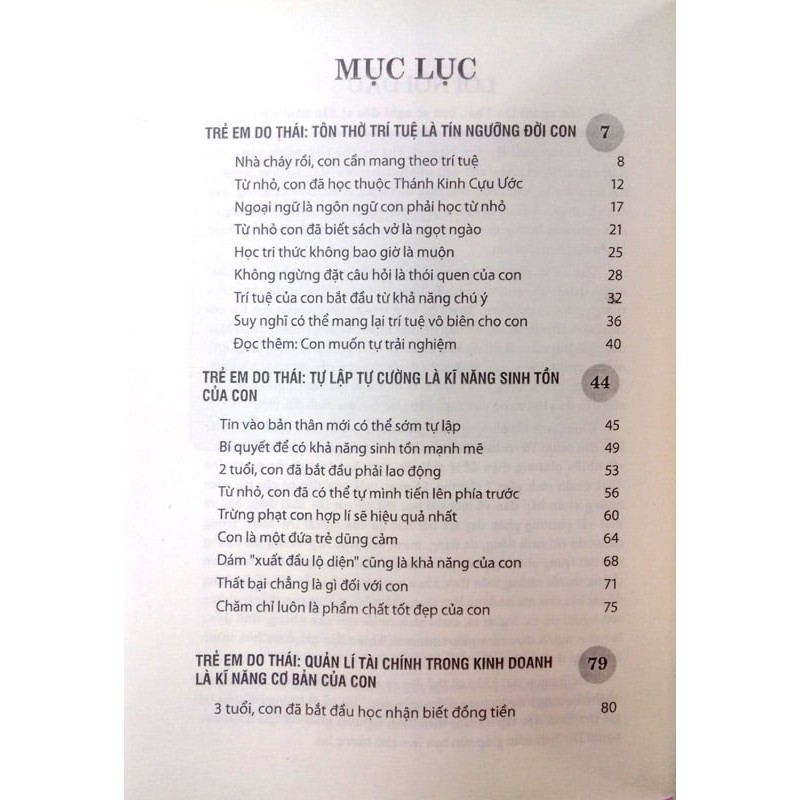 Cuốn sách gồm 7 chương, 56 mục, mỗi mục đều có ví dụ sinh động và trực tiếp cách dạy con của người Do Thái. Với những phương pháp dạy con cái thực tế, linh hoạt sẽ giúp các bậc cha mẹ bồi dưỡng nên những người con thiên tài. Bằng lối viết nhẹ nhàng, tinh tế tạo cho người đọc cảm giác gần gũi, dễ hiểu.