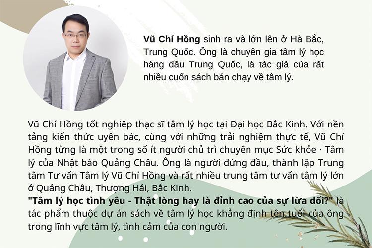 Vũ Chí Hồng sinh ra và lớn lên ở Hà Bắc, Trung Quốc. Ông là chuyên gia tâm lý học hàng đầu Trung Quốc, là tác giả của rất nhiều cuốn sách bán chạy về tâm lý.
