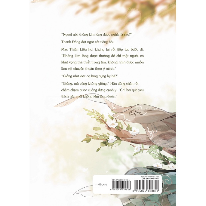 Giới thiệu sách: “Ngươi nói không kìm lòng được nghĩa là sao?” Thanh Đồng đột ngột cất tiếng hỏi. Mạc Thiên Liêu hơi khựng lại rồi tiếp tục bước đi, “Không kìm lòng được thường để chỉ một người có khát vọng tha thiết trong tim, không nhịn được muốn làm vài chuyện thuận theo ý mình.” “Giống như việc cọ lông bụng ấy hả?” “Giống, mà cũng không giống.” Hắn dừng chân rồi chầm chậm bước xuống đứng cạnh y, “Chỉ bởi quá yêu thích nên mới không kìm lòng được.”