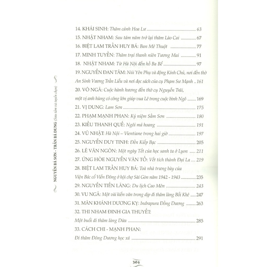 Sách - Tinh Hoa Du Ký Trên Tri Tân Tạp Chí (1941-1945) Tác giả Nguyễn Hữu Sơn - Trần Bá Dung (Sưu tầm và tuyển chọn) Nhà xuất bản NXB Thanh Niên Đơn vị phát hành Cty TNHH Sách và Truyền Thông Việt Nam Ngày xuất bản 05-2021 Số trang 396 Kích thước 16 x 24 cm Loại bìa Bìa mềm Nội dung "Cuốn sách cung cấp tư liệu cho người yêu văn hóa, văn học, các ngành du lịch, địa phương học, nhân học và liên ngành khoa học xã hội …