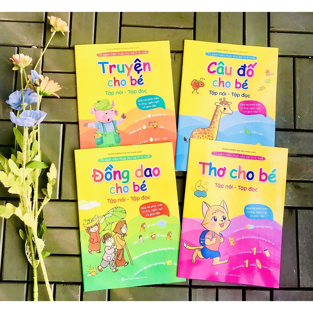 Trọn bộ gồm 4 quyển: Đồng dao, Thơ, Truyện, Câu đố cho bé Tập nói, Tập đọc