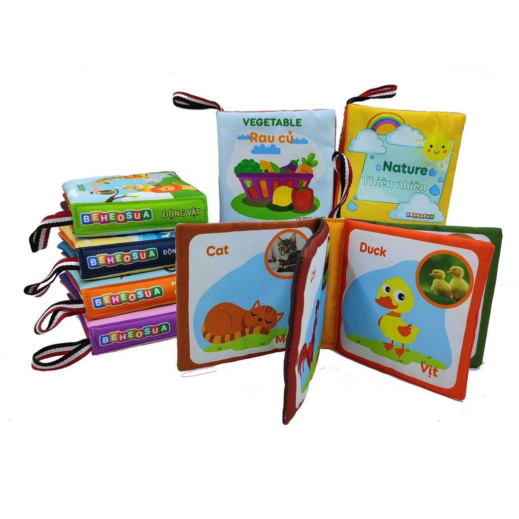 Sách vải cho bé giúp bé kích thích đa giác quan - Thương hiệu Bé Heo Sữa song ngữ Việt - Anh