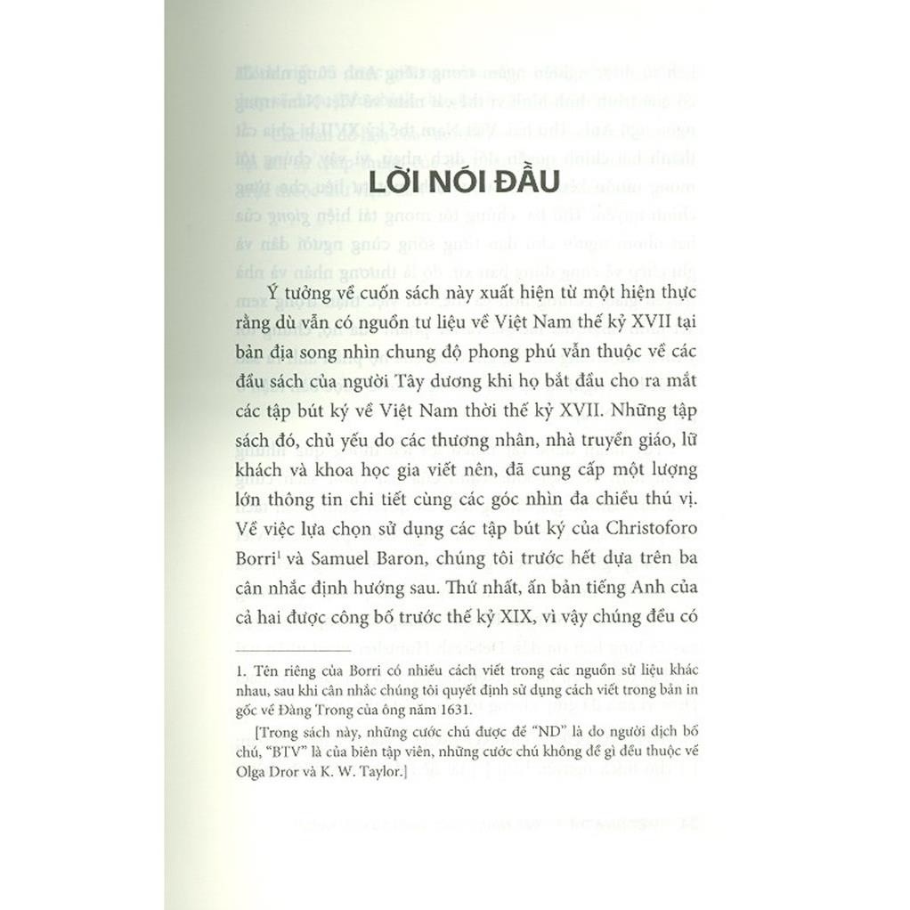 Tất cả được gói gọn trong ấn phẩm Việt Nam thế kỷ XVII: Những góc nhìn từ bên ngoài (Christoforo Borri về Đàng Trong và Samuel Baron về Đàng Ngoài)."
