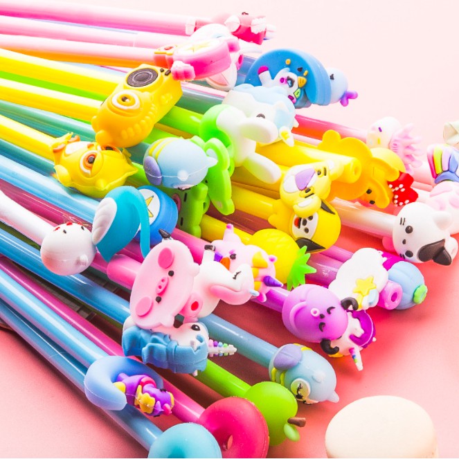 (SALE SỐC) BÚT XINH HOT MẪU MỚI, BÚT HỌC SINH DỤNG CỤ HỌC TẬP, QUÀ TẶNG CUTE BÚT XINH DỄ THƯƠNG GIÁ RẺ, dụng cụ học sinh, dụng cụ học sinh Bút xinh cute, đồ dùng học tập đáng yêu, vpp cho các loại bút cute dễ thương Loại sản phẩm: Bút kim nước. Màu mực: 99% mực đen. Shop phát màu ngẫu nhiên Size ngòi: 0.5mm. Đầu bi siêu nhỏ, nét chữ thanh, viết chữ đẹp, Mực trơn, đều. Chất liệu, thiết kế: Thân bút làm bằng chất su silicon bền chắc, đảm bảo độ mềm, viết êm tay Chất liệu mực chất lượng, đậm nét, đều màu. Tạo hình đẹp mắt, dễ thương, vô cùng độc đáo và nổi bật, màu sắc hài hòa, tươi sáng. Bút có nắp đậy tiện dụng. Trọng lượng: 15g Thích hợp làm quà tặng An toàn khi sử dụng số lượng 1 cây --- - Khách hàng vui lòng chọn đúng phân loại hàng. Không ghi chú chọn màu/mẫu trong đơn. Shop soạn theo đúng phân loại hàng khách đặt trên đơn ạ. Nếu sản phẩm nhiều mẫu nhưng không có phân loại hàng thì shop lấy ngẫu nhiên khách nhé --- BUKAO - Bút Xinh Kawaii - Văn phòng phẩm cute, quà tặng và phụ kiện xinh