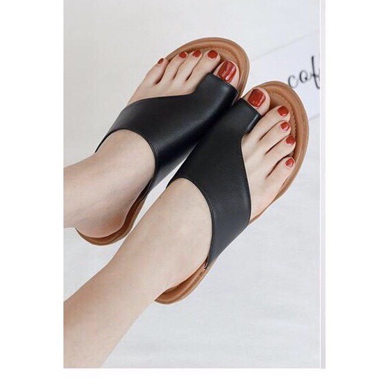 Giới thiệu ⚡Sale Sốc⚡Dép Xỏ Ngón Nữ Quai Da Bản To Phong Cách Hàn Quốc Màu Đen, Kem - Dép Kẹp Ngón Nữ