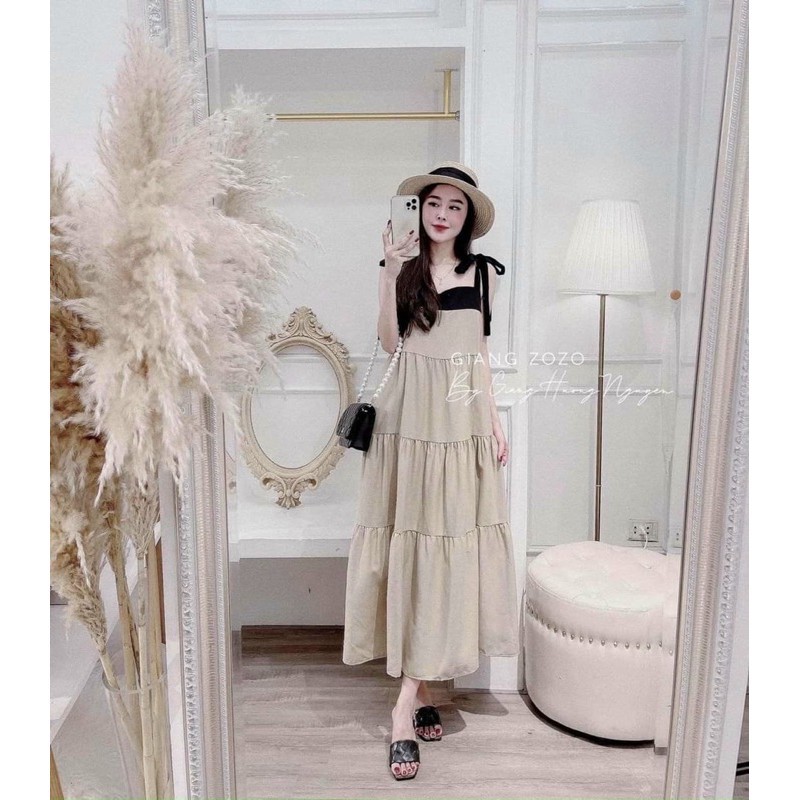 Giới thiệu [Sale sốc] Váy bầu 2 dây cao cấpchất lụa hàn siêu mát, thấm hút mồ hôicam kết y hìnhfree size 43~68kg